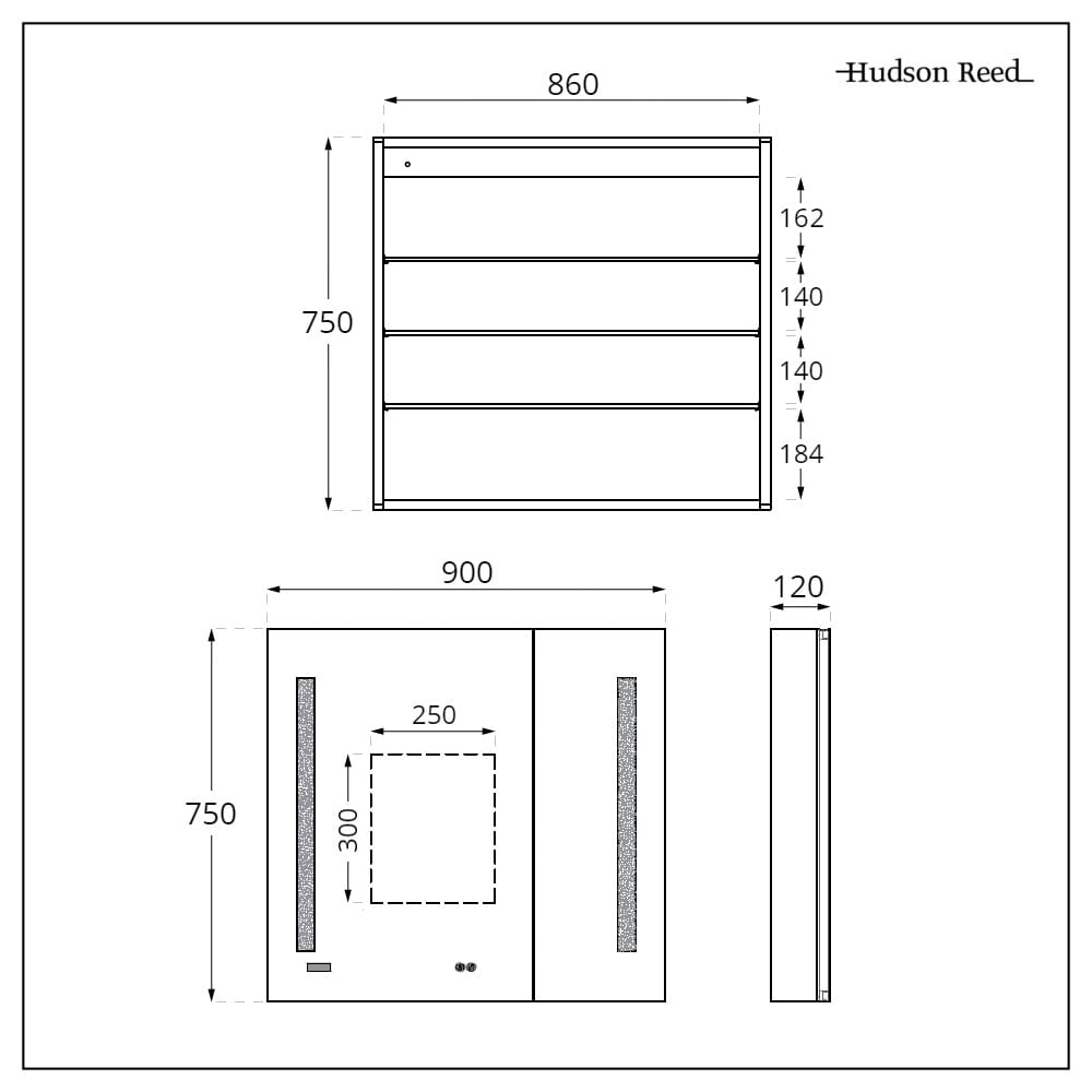 Introduci spazio di archiviazione essenziale nel tuo bagno con l'armadietto a specchio LED della gamma Alba da 900 mm x 750 mm.
