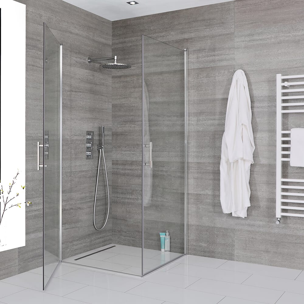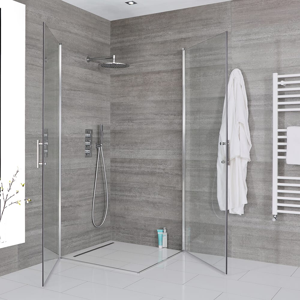 Il box doccia angolare con doppia porta battente Portland fonde perfettamente lo stile moderno con un'eccellente funzionalità.