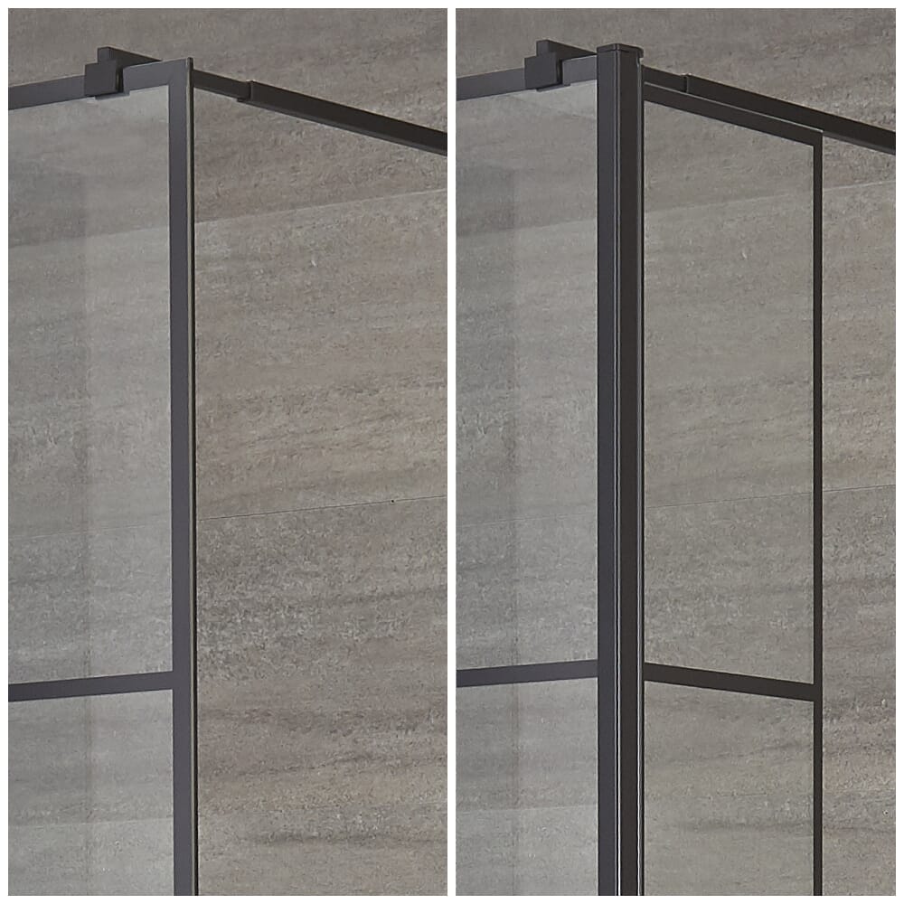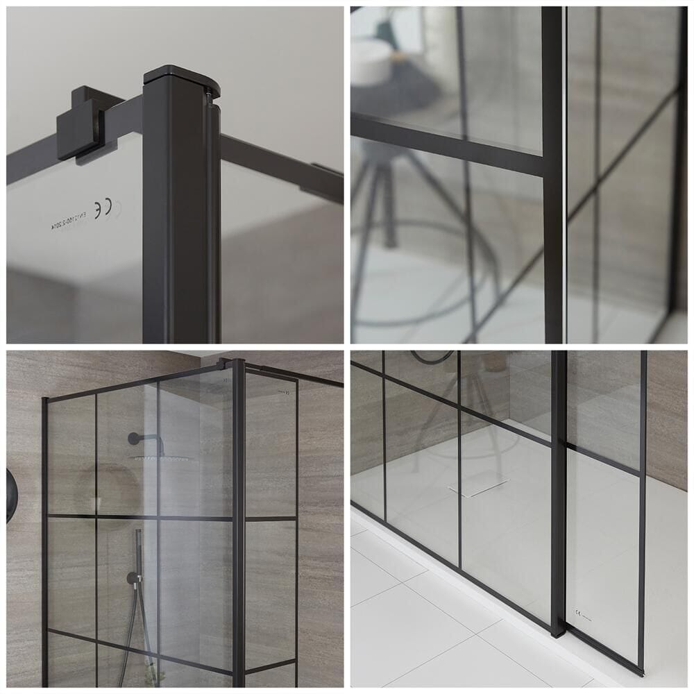 Questa doccia walk-in offre molto spazio per la doccia e utilizza un vetro temperato da 8mm per una resistenza e una durata eccezionali. Il motivo a griglia nera è stampato all'esterno del vetro, consentendo una pulizia più semplice.