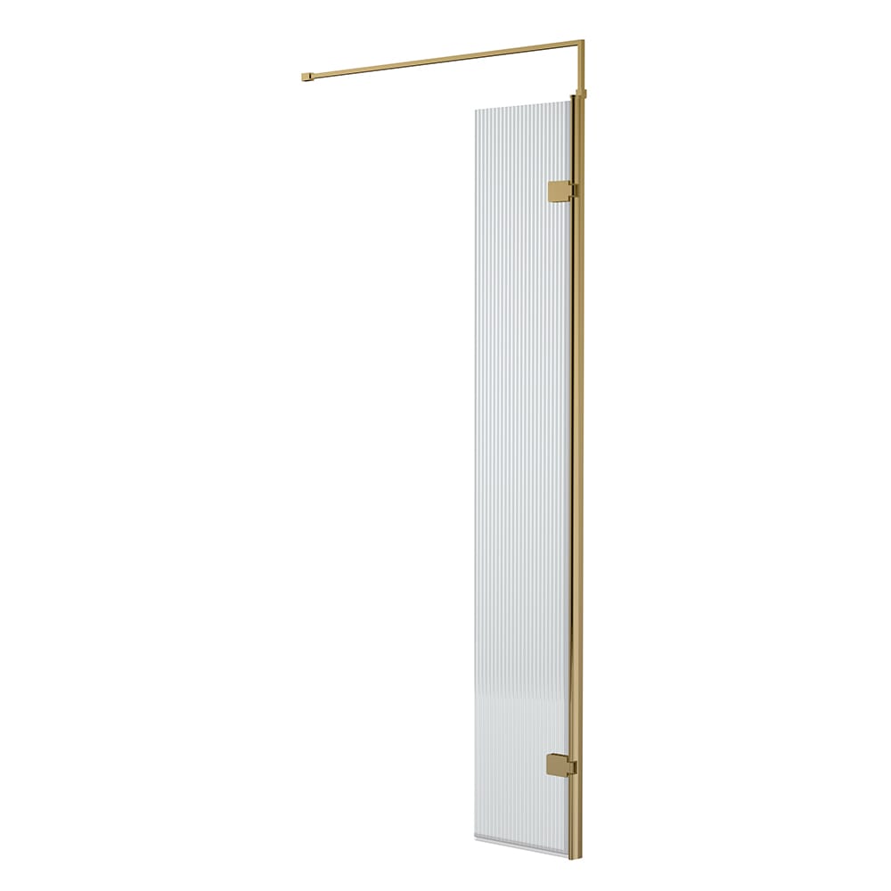 Box Doccia Walk-In Ottone Spazzolato in Vetro Scanalato con Piatto Doccia - Scelta di Dimensioni ed Opzioni con Anta Paraspruzzi