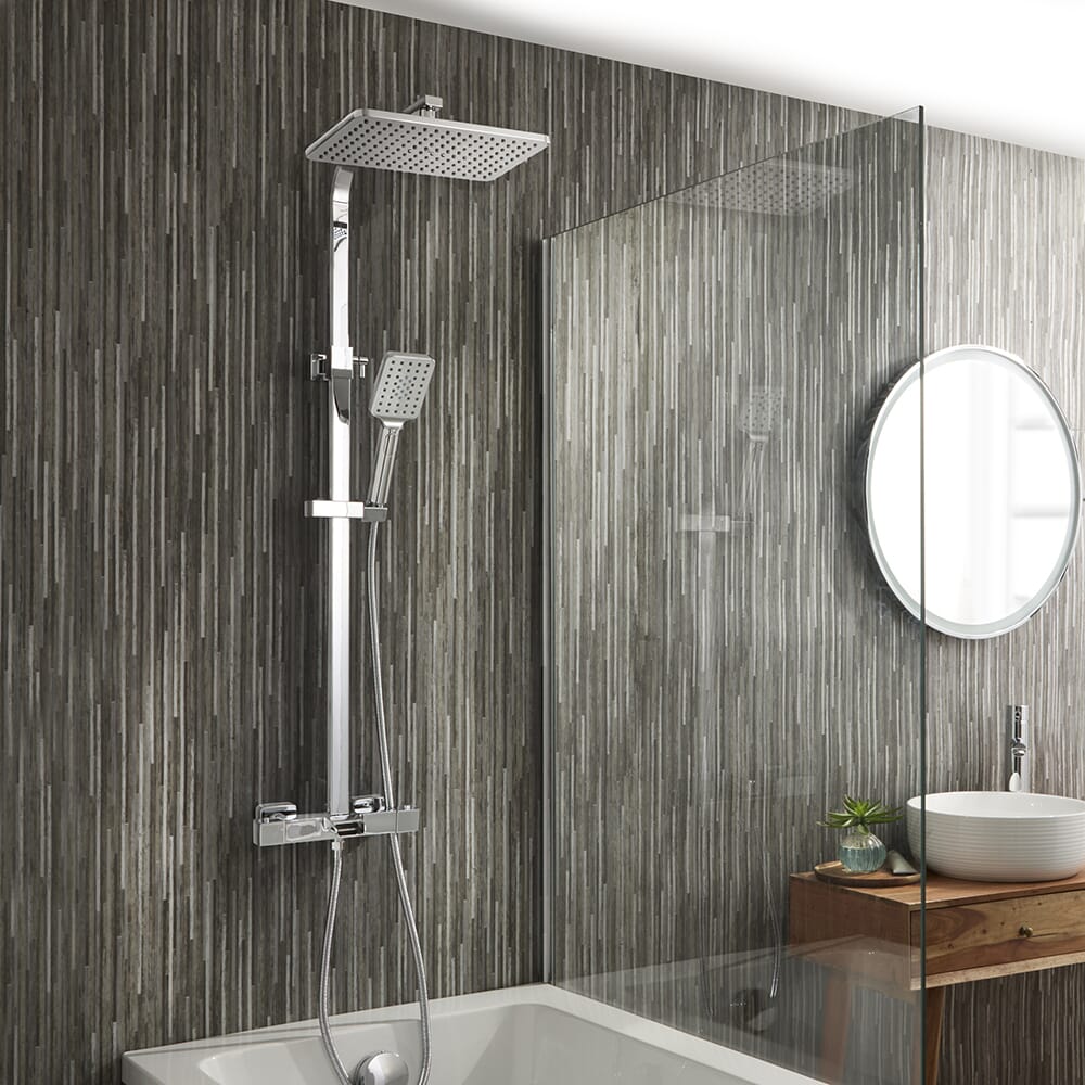 Questa colonna doccia multifunzione è caratterizzata da linee squadrate contemporanee. Il miscelatore termostatico a barra incorpora un erogatore per vasca, rendendo questo kit doccia perfetto per l'installazione sopra la vasca da bagno. Il miscelatore a barra offre un controllo senza sforzo e utilizza la tecnologia antiscottatura per garantire una doccia o un bagno sempre sicuri e confortevoli.