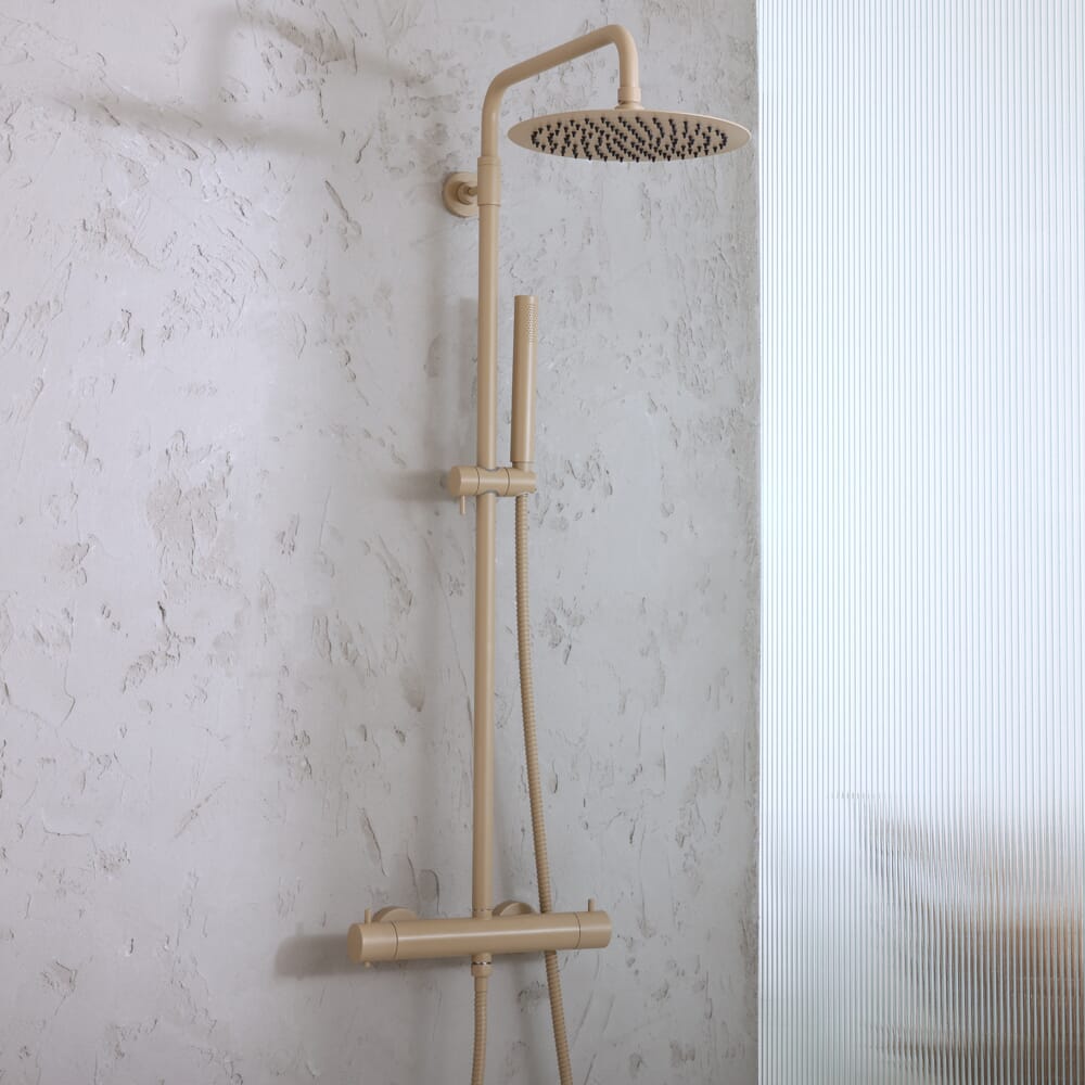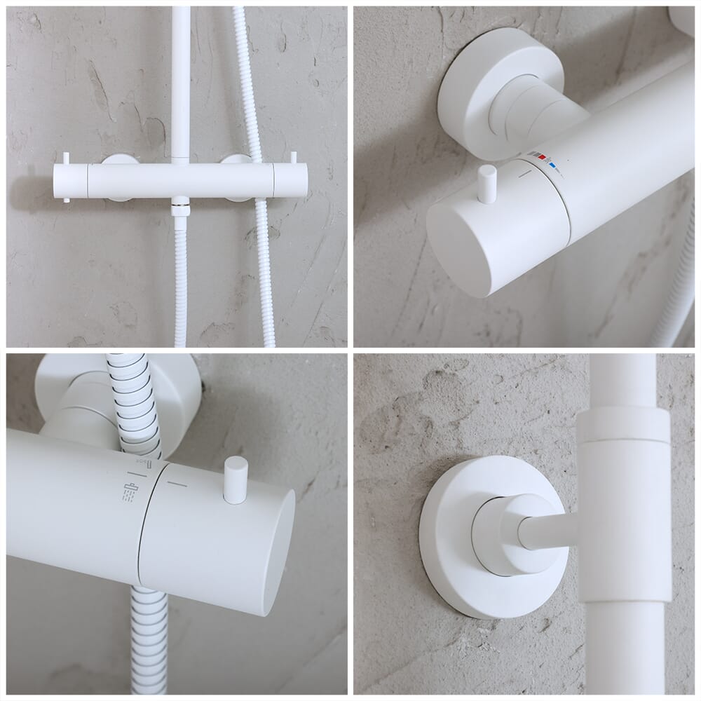 Colonna Doccia con Miscelatore Termostatico, Soffione Rotondo e Doccetta - Scelta della Finitura - Elements