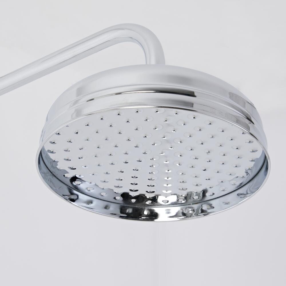 La colonna doccia tradizionale offre un’esperienza di doccia lussuosa grazie al soffione fisso con getto d’acqua ad effetto pioggia ed è realizzato in ottone massiccio. Il tutto completato da un’elegante finitura cromata per garantire una lunga durata. Un deviatore consente di passare da una funzione all’altra ed un pratico cursore ti permette di posizionare la doccetta all’altezza desiderata con una impugnatura ergonomica in ceramica nera.