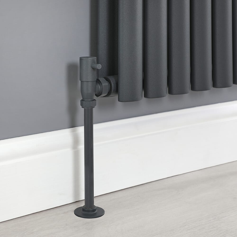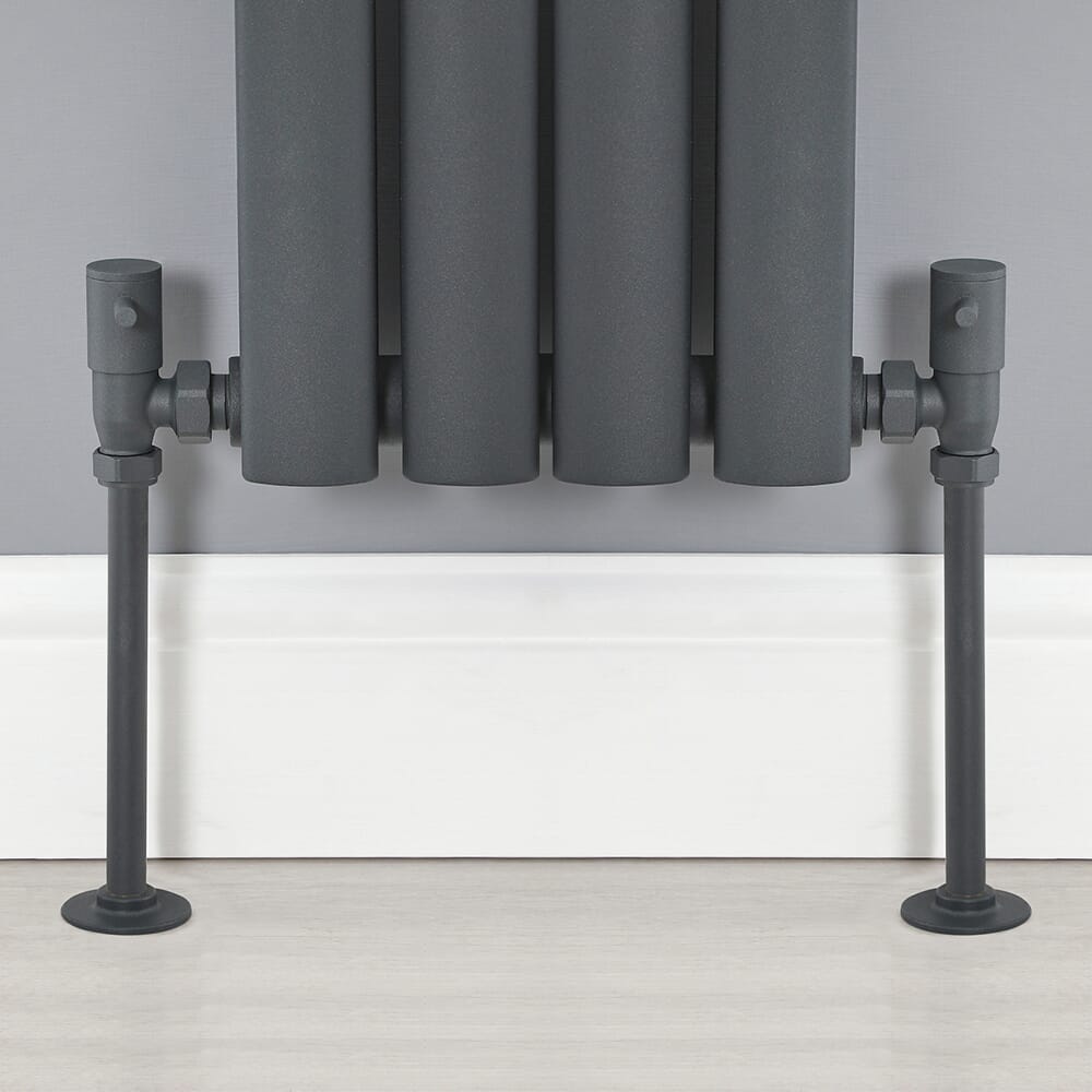 Aggiungi gli importantissimi ritocchi finali al tuo nuovo radiatore o scaldasalviette con questa coppia di valvole a squadra per radiatore antracite Hudson Reed.