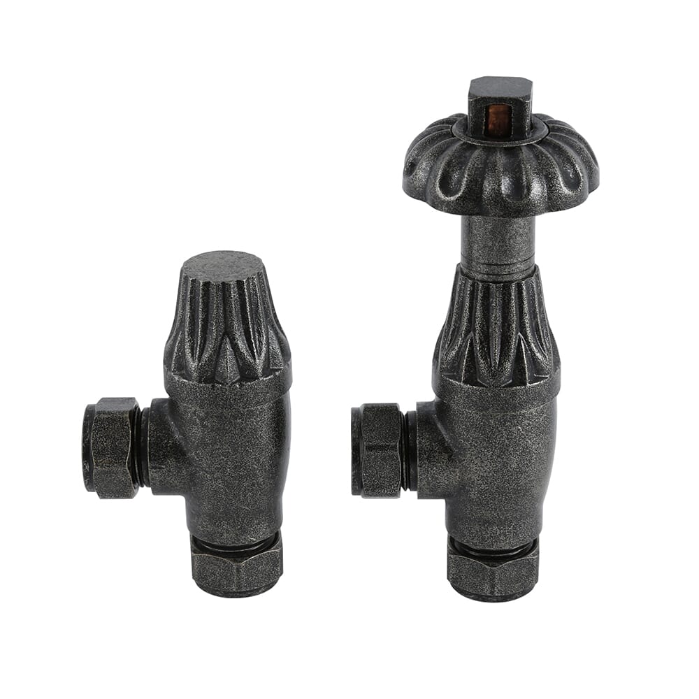 Coppia di Valvole Termostatiche a Squadra in Stile Antico - Peltro - Regent