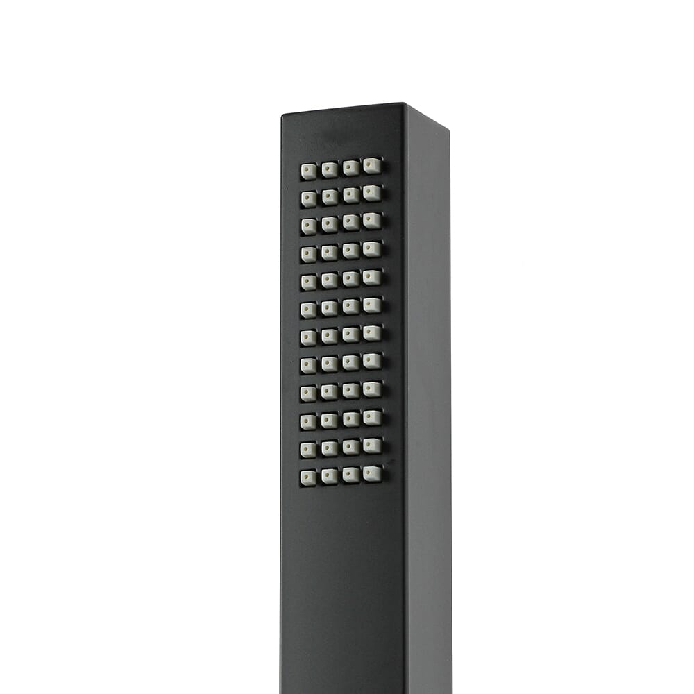 Questa resistente doccetta presenta una resistente finitura nera opaca e un design quadrato contemporaneo. Facile e veloce da montare, eroga un getto d'acqua rinfrescante e dispone di ugelli in silicone in modo che eventuali depositi di calcare possano essere facilmente rimossi, mantenendo il soffione della doccia a pieno flusso.