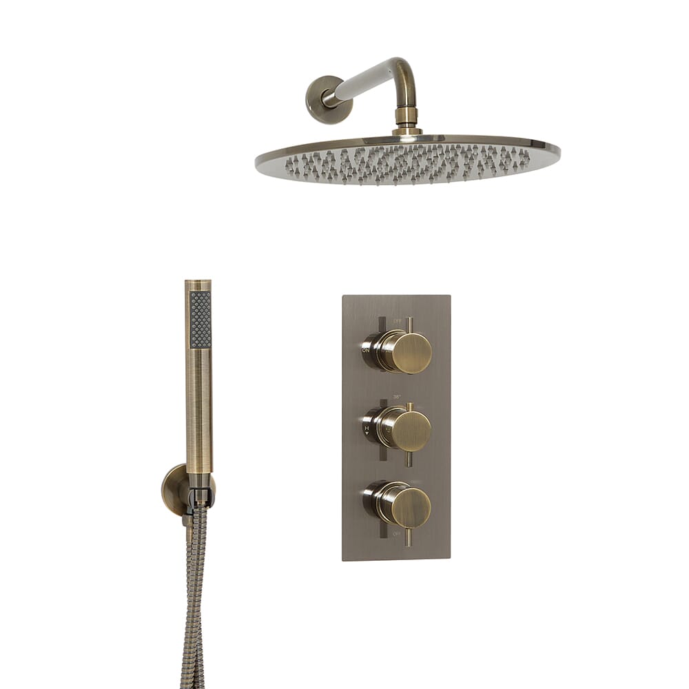 Costruito in solido ottone massiccio, il miscelatore doccia utilizza la tecnologia antiscottatura, offrendoti sempre una doccia sicura e confortevole. Ha un design incassato per una finitura più ordinata e maniglie rotonde facili da usare.