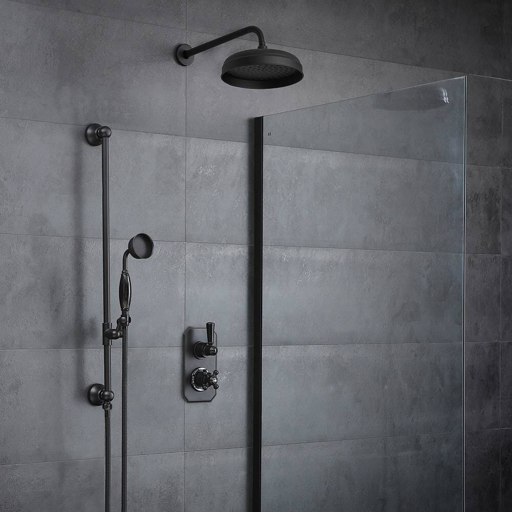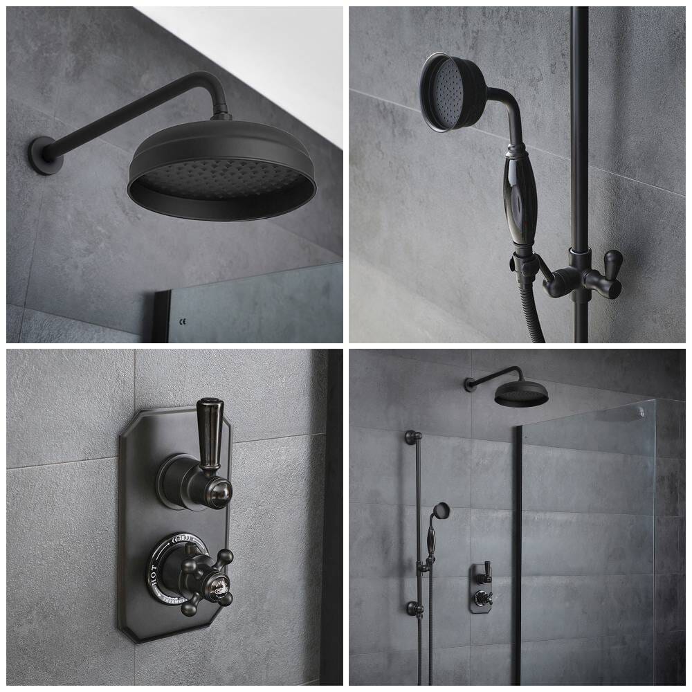 - Soffione doccia e braccio a parete neri da 200mm - Elizabeth
