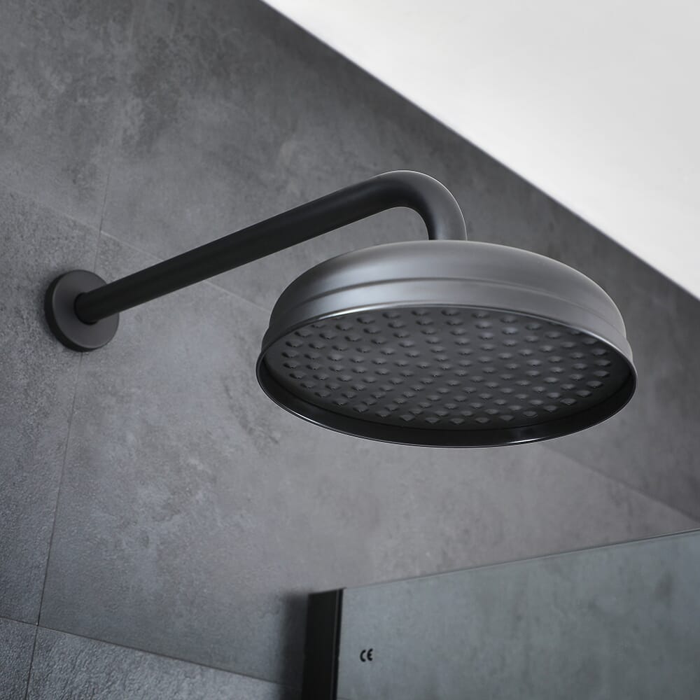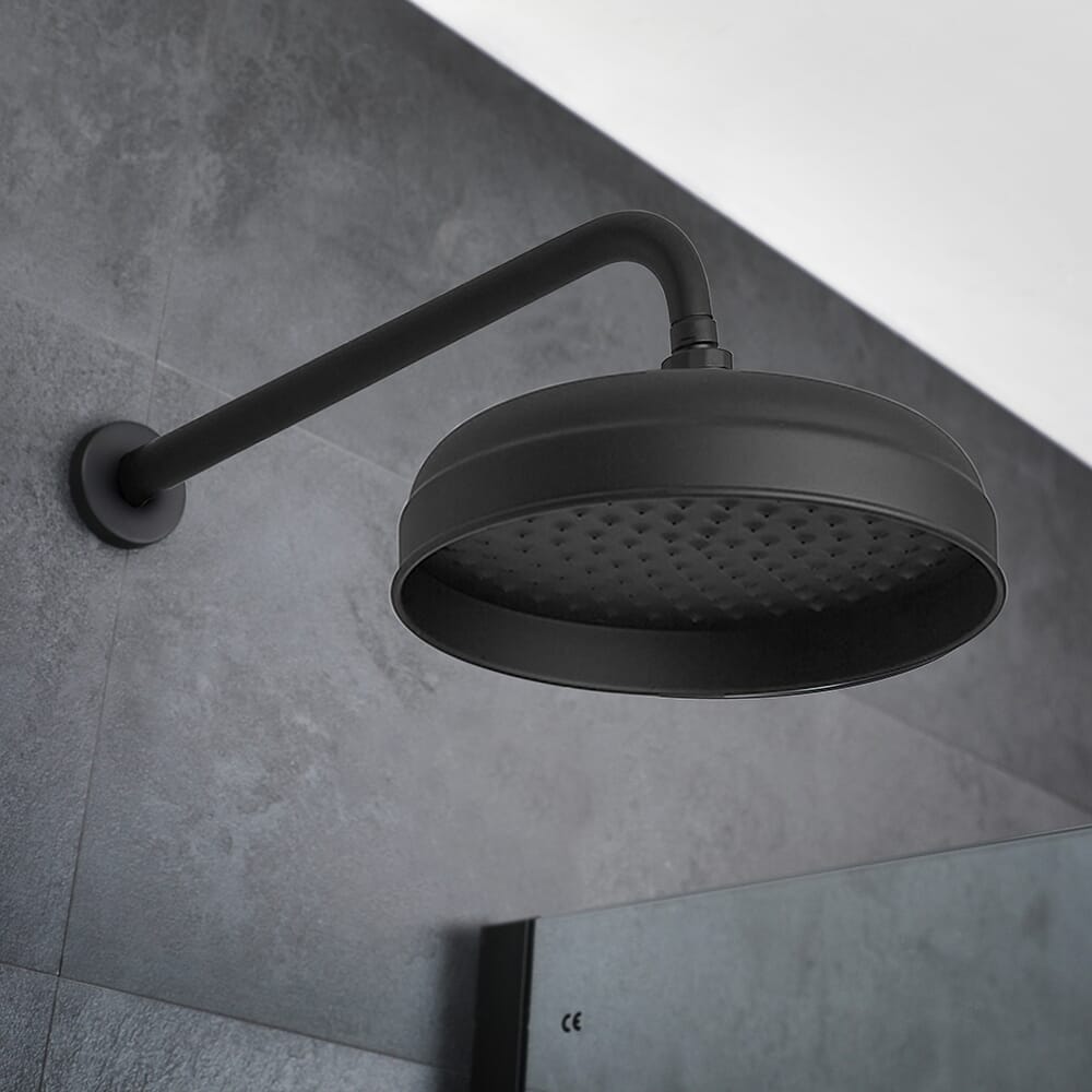 - Soffione doccia e braccio a parete neri da 200mm - Elizabeth
