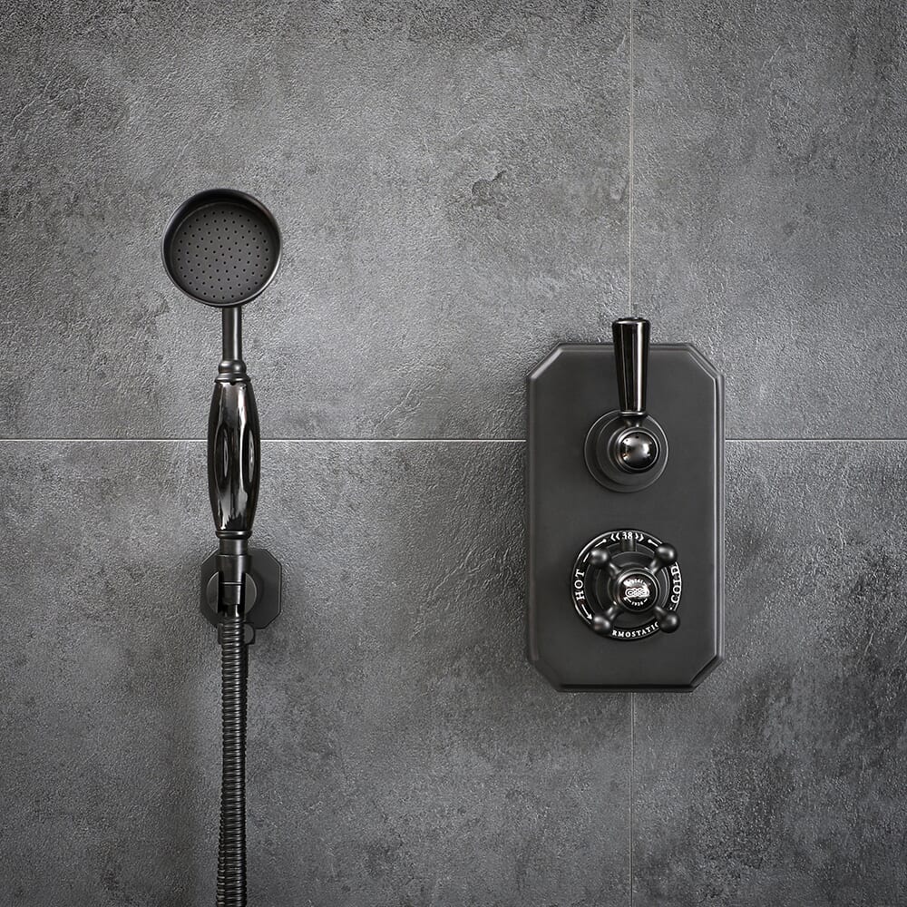 Doccia Termostatica Tradizionale Nera con Deviatore, Soffione e Doccetta (2 Vie) - Elizabeth
