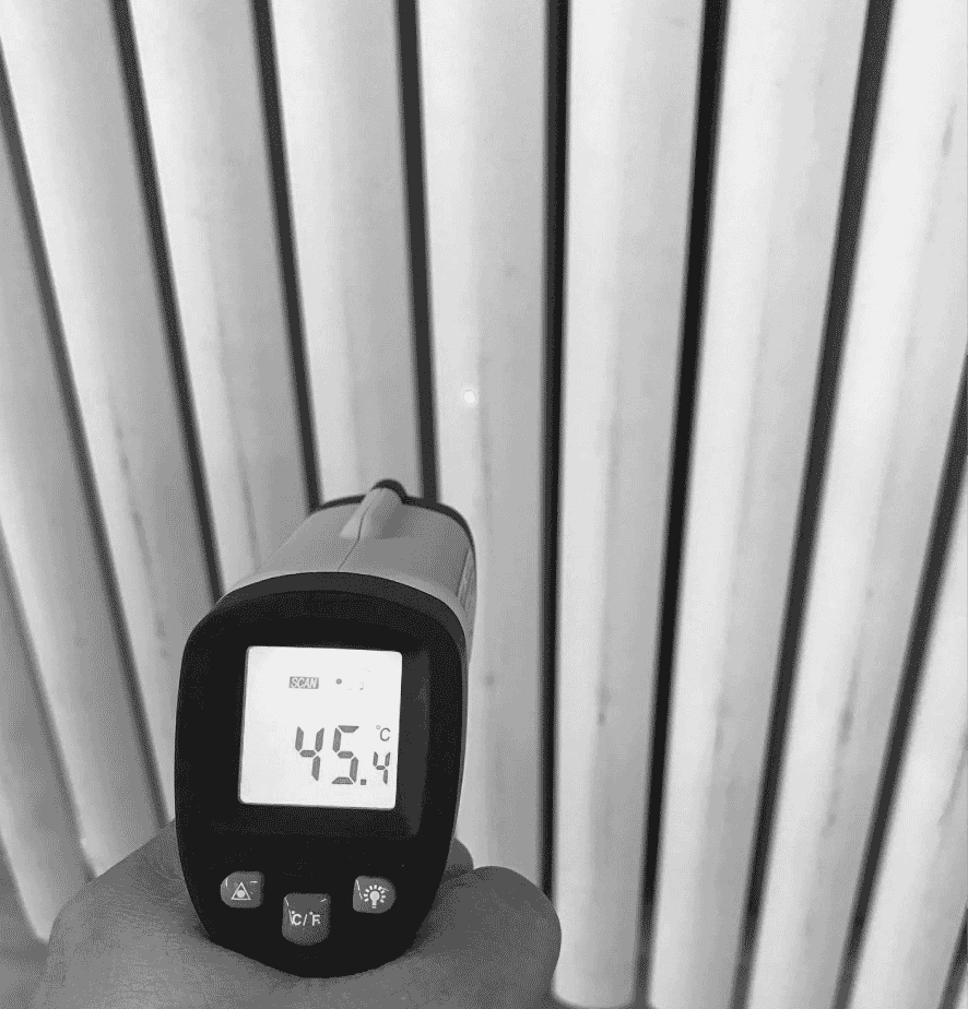 Il test di verifica di tutti i radiatori e scaldasalviette Hudson Reed viene eseguito in una “camera di prova” per determinare la resa termica di ciascun calorifero.