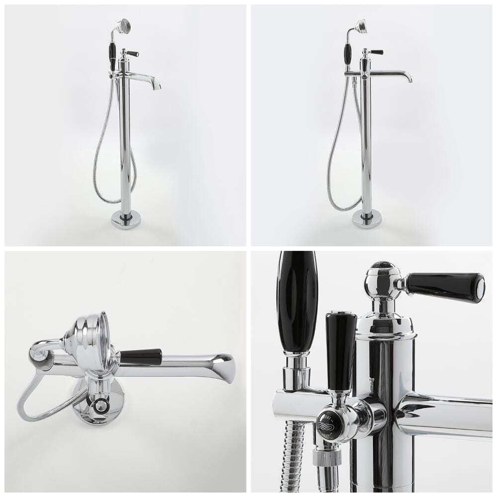 Gruppo Vasca a Terra con Doccetta Design Tradizionale Finitura Cromata e Nera - Elizabeth