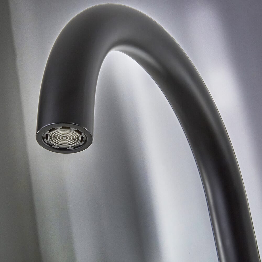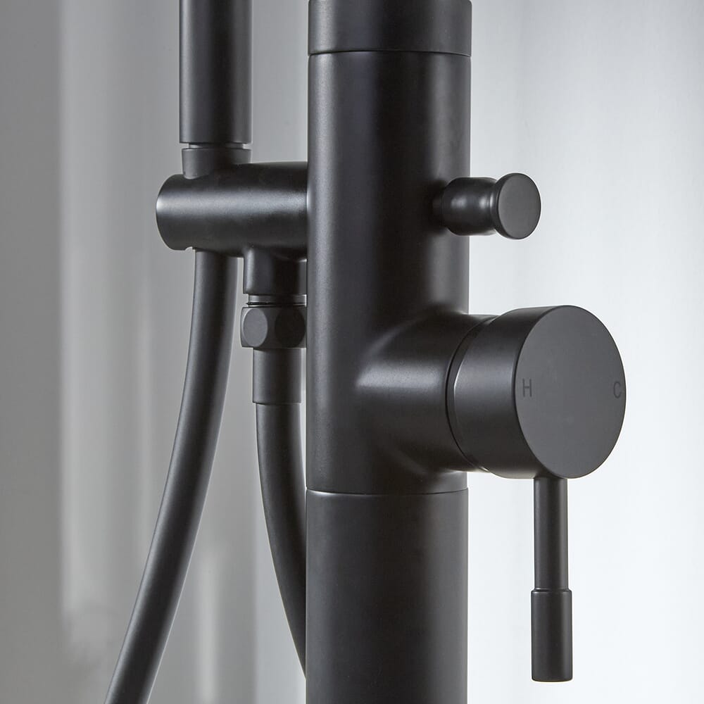 Aggiungi stile e design alla tua stanza da bagno con questo moderno gruppo vasca esterno on finitura nero opaco. Realizzato in ottone massiccio per garantire una lunga durata, questo miscelatore per vasca con telefono integrato è perfetto per qualsiasi spazio decorato in stile contemporaneo. Il miscelatore per vasca incorpora dischi in ceramica per aiutare a prevenire gocciolamenti e perdite.