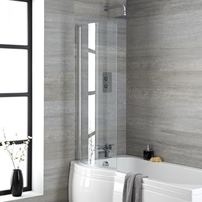 Le vasche con doccia a forma di P sono un’opzione popolare. Presentano una sezione curva all’estremità della doccia con uno schermo in vetro curvato coordinato che offre ulteriore spazio per la doccia.