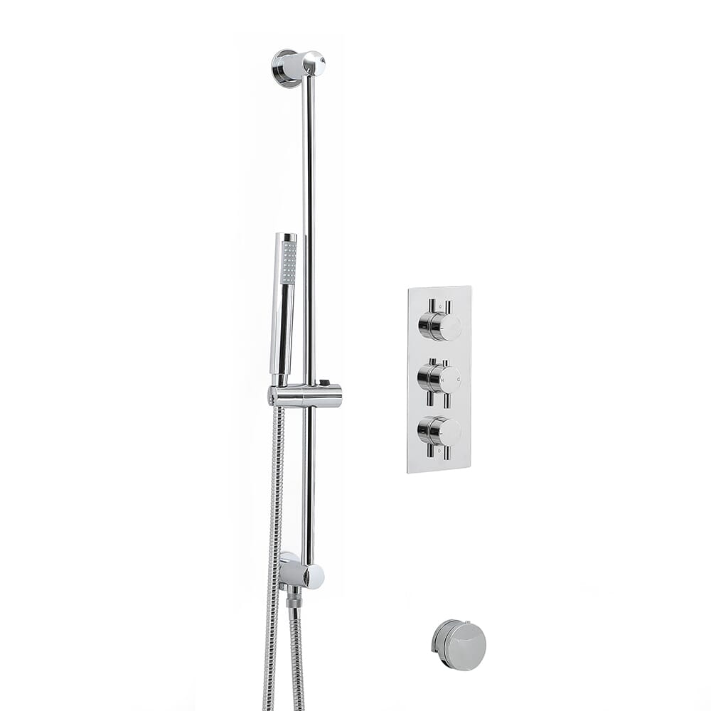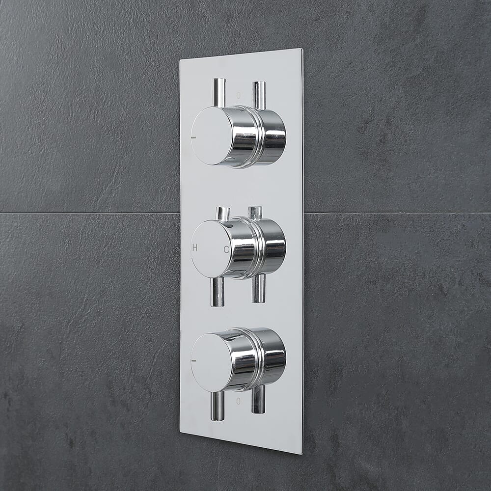 Aggiungi stile alla tua stanza da bagno e crea un look elegante e contemporaneo grazie questo fantastico sistema doccia Como con miscelatore termostatico doccia a due vie. Il set comprende un miscelatore termostatico triplo a due vie, un kit doccia con asta saliscendi con doccetta e un erogatore per vasca con effetto a cascata.