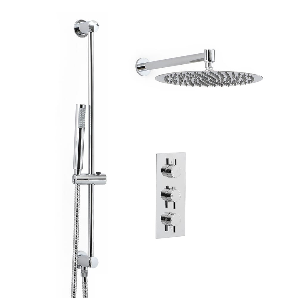 Kit Doccia Circolare Moderno Completo di Miscelatore Doccia Termostatico Cromato Triplo con a 2 Vie con Deviatore Completo di Soffione Doccia da 300mm e Asta Saliscendi con Doccetta - Como