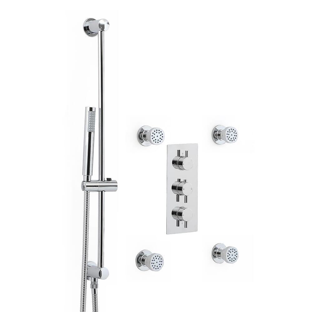 Kit Doccia Circolare Moderno Completo di Miscelatore Doccia Termostatico Triplo Cromato a 2 Vie con Asta Saliscendi con Doccetta e Idrogetti Doccia - Mirage