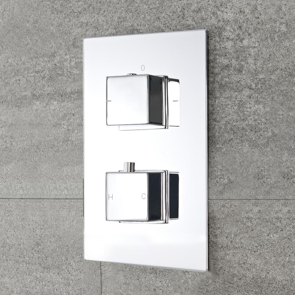 Dotato di tecnologia anti-scottatura per interrompere automaticamente il flusso d'acqua se la temperatura aumenta troppo per sicurezza, il miscelatore termostatico in ottone massiccio include un deviatore per passare facilmente dal soffione alla doccetta. Le intuitive maniglie quadrate consentono un facile controllo del flusso e della temperatura per garantire che la tua doccia sia perfetta.