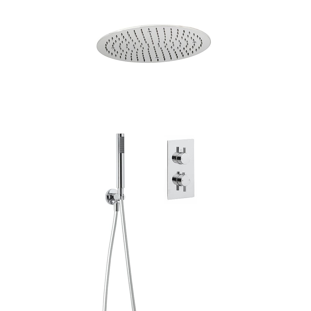 Questo elegante kit doccia viene fornito con un miscelatore doccia termostatico, soffione doccia ad incasso e doccetta. Un kit di alta qualità, durevole che aggiunge un tocco di classe.