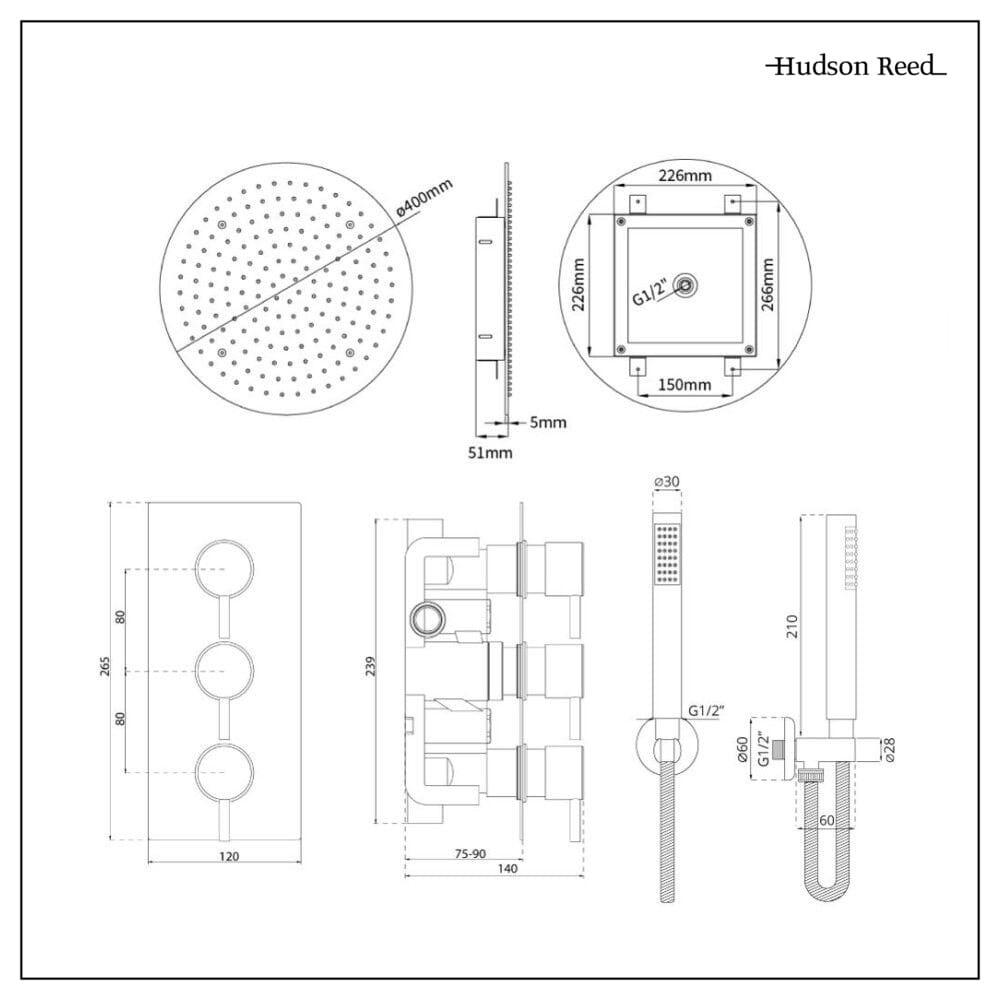Questo elegante kit doccia viene fornito completo di un miscelatore doccia termostatico, un soffione doccia ad incasso e una doccetta. Un kit di alta qualità, durevole che aggiunge un tocco di classe.