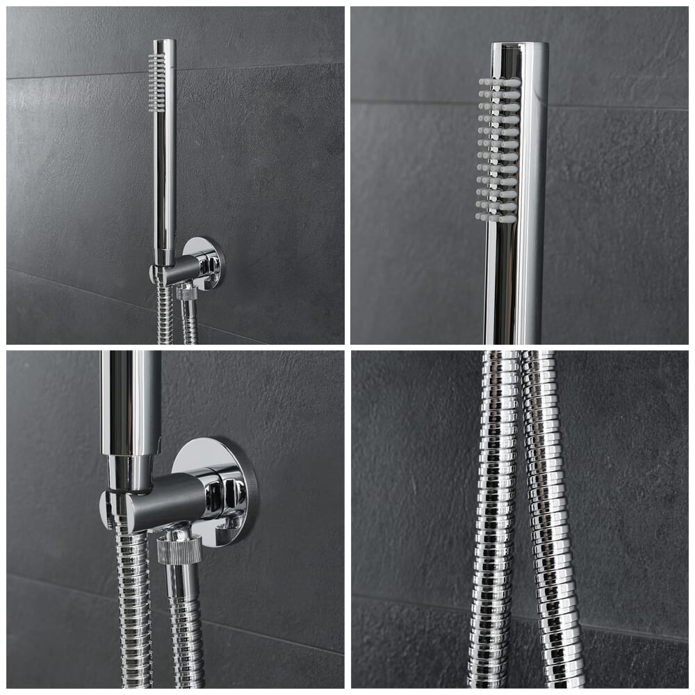 Un moderno kit doccia pratico di alta qualità perfetto per creare un look moderno. Il kit include una docceta, un clip di supporto murale e un flessibile doccia.