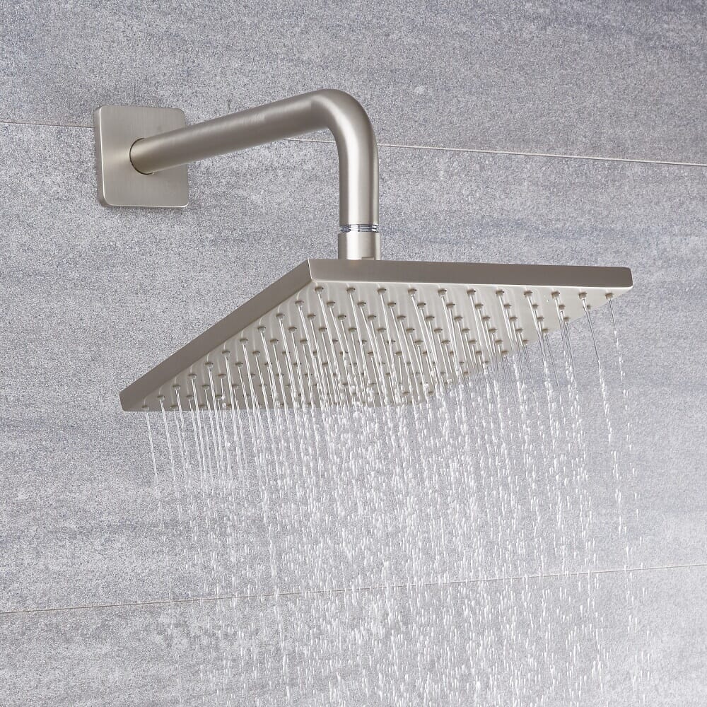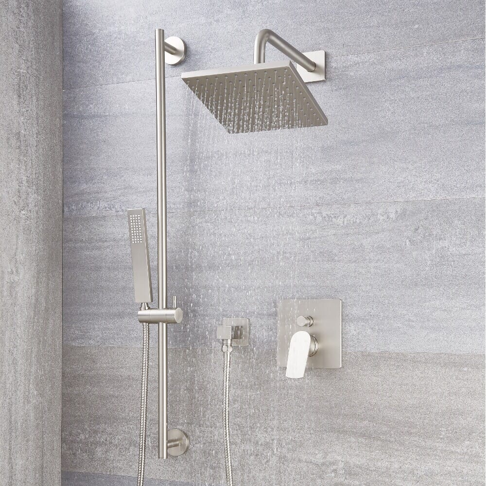 Kit Doccia con Finitura in Nichel Spazzolato Completo di Miscelatore Doccia Manuale a 2 Vie con Soffione Doccia Quadrato 200mm e Asta Saliscendi - Harting