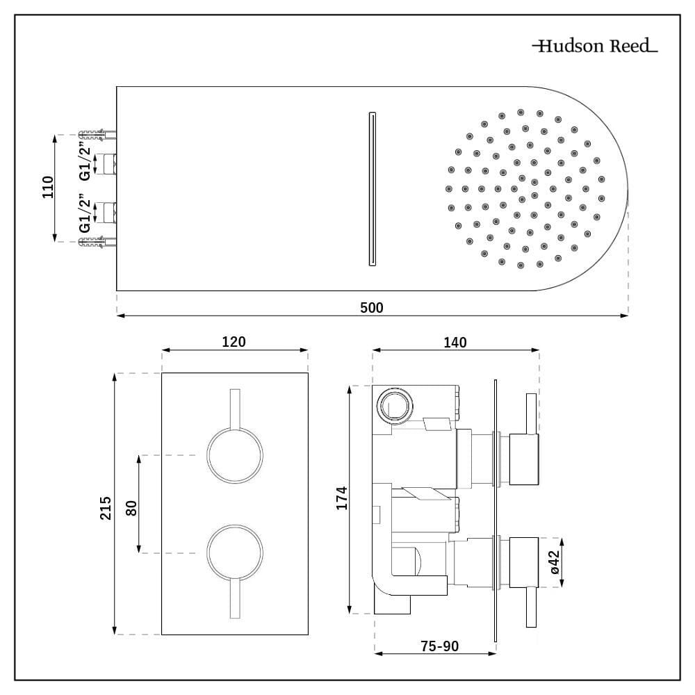 - Soffione da 200 mm x 500 mm con effetto cascata incorporato per una doccia lussuosa