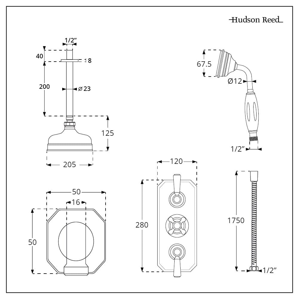 Trasforma totalmente il tuo bagno scegliendo il kit doccia tradizionale Elizabeth con il miscelatore termostatico a tre vie, soffione con braccio a soffitto da 200mm e asta saliscendi con doccetta.
