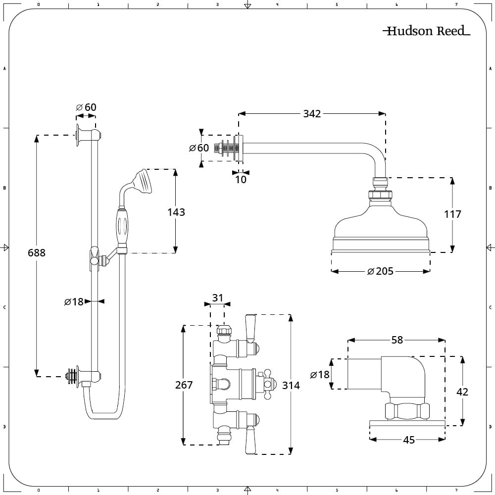 Crea uno straordinario look tradizionale e fai la doccia con stile con il kit doccia Elizabeth composto di miscelatore termostatico a tre vie, soffione doccia da 200 mm e asta saliscendi.