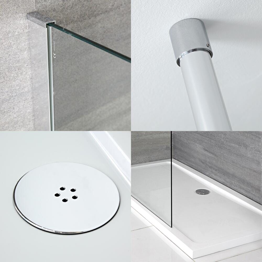 Kit Doccia Walk-In Angolare Sera Completo di Pannello do Vetro Fisso, Piatto Doccia Bianco e Profilo Cromato - Disponibile in Diverse Misure
