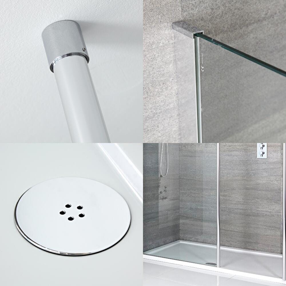 Aggiungi stile alla tua stanza da bagno e creare uno spazio elegante e di design con questo kit doccia walk-in angolare Sera. Il kit viene completo di un pannello di vetro 1950mm (in altezza) e un piatto doccia bianco che vanta di un’area spaziosa sia per farsi la doccia che per asciugarsi. Caratterizzato dal vetro di sicurezza 8mm e da un profilo cromato, questa doccia walk-in fornisce un accesso semplice e veloce alla doccia.