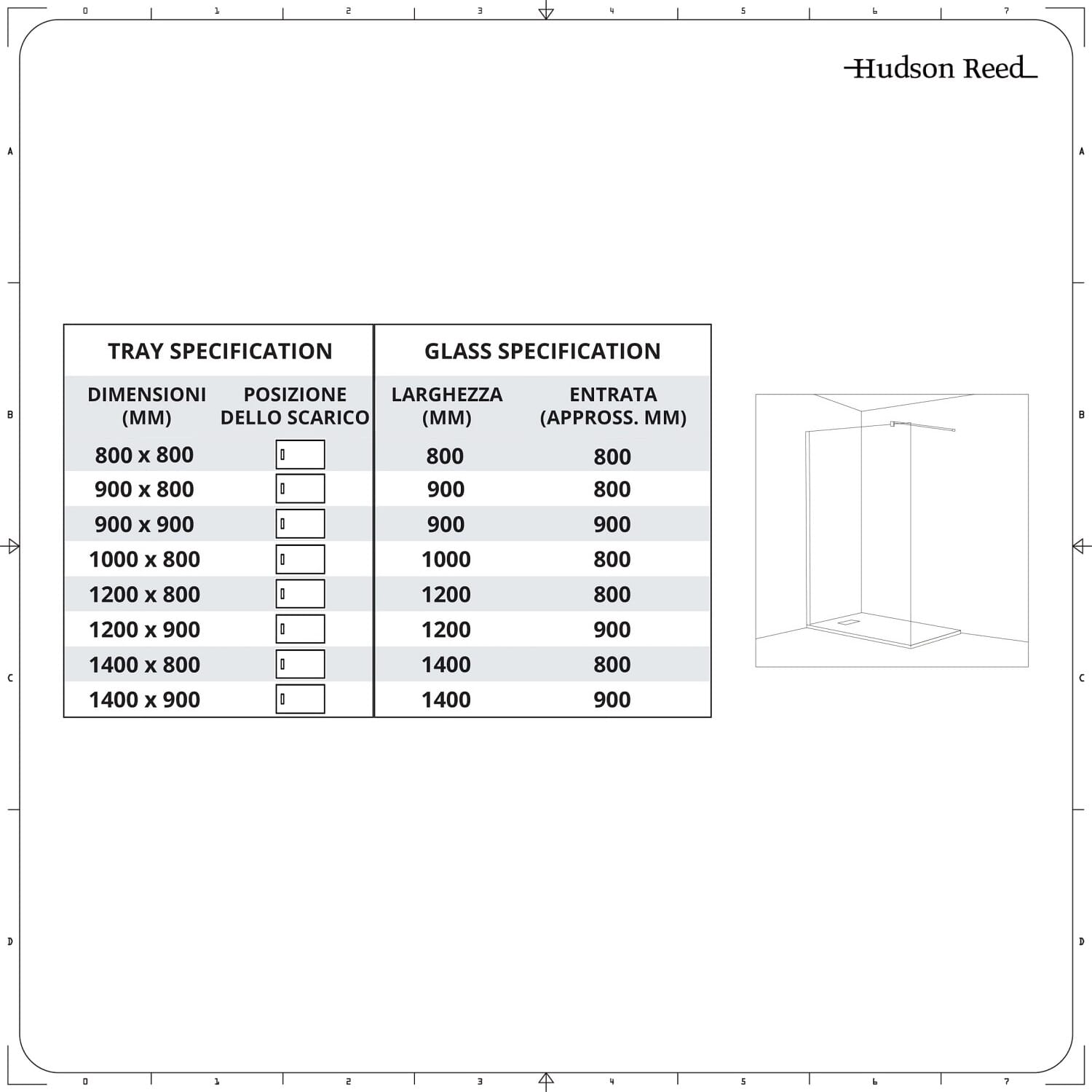 - Disponibile in una vasta selezione di misure da 800mm x 800mm x 1400mm x 900mm