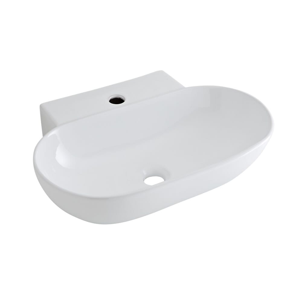 Lavabo Bagno da Appoggio Sospeso in Ceramica Ovale 555x395mm con Rubinetto Monoforo - Otterton