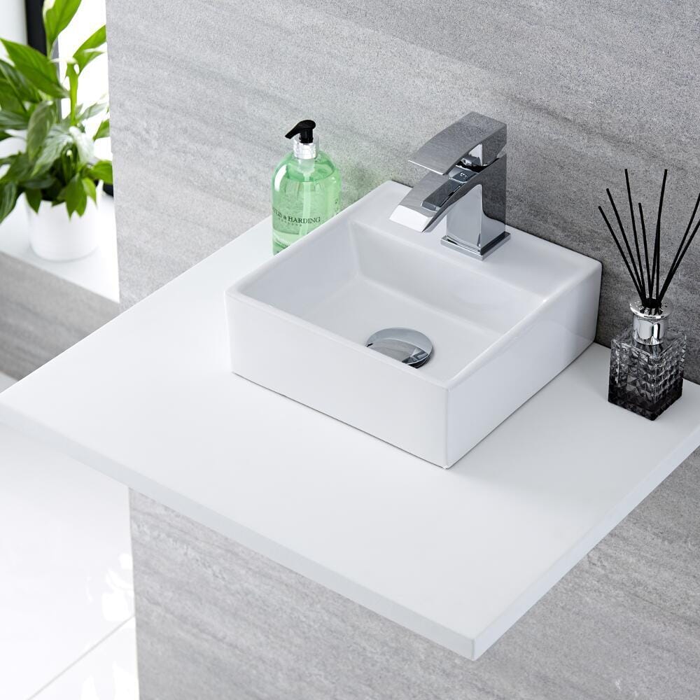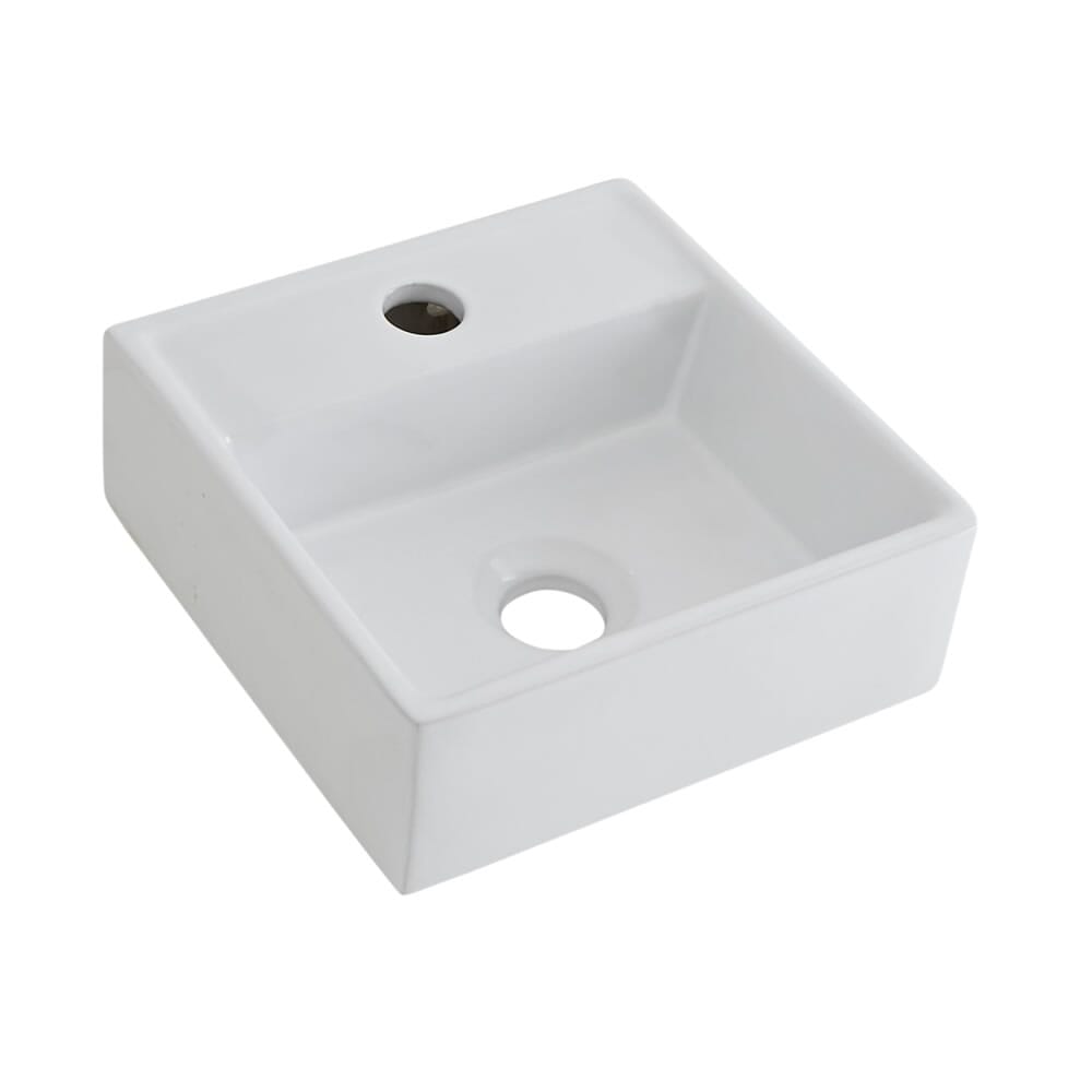 Lavabo Bagno da Appoggio Sospeso Quadrato in Ceramica 280x280mm con Rubinetto Miscelatore – Halwell