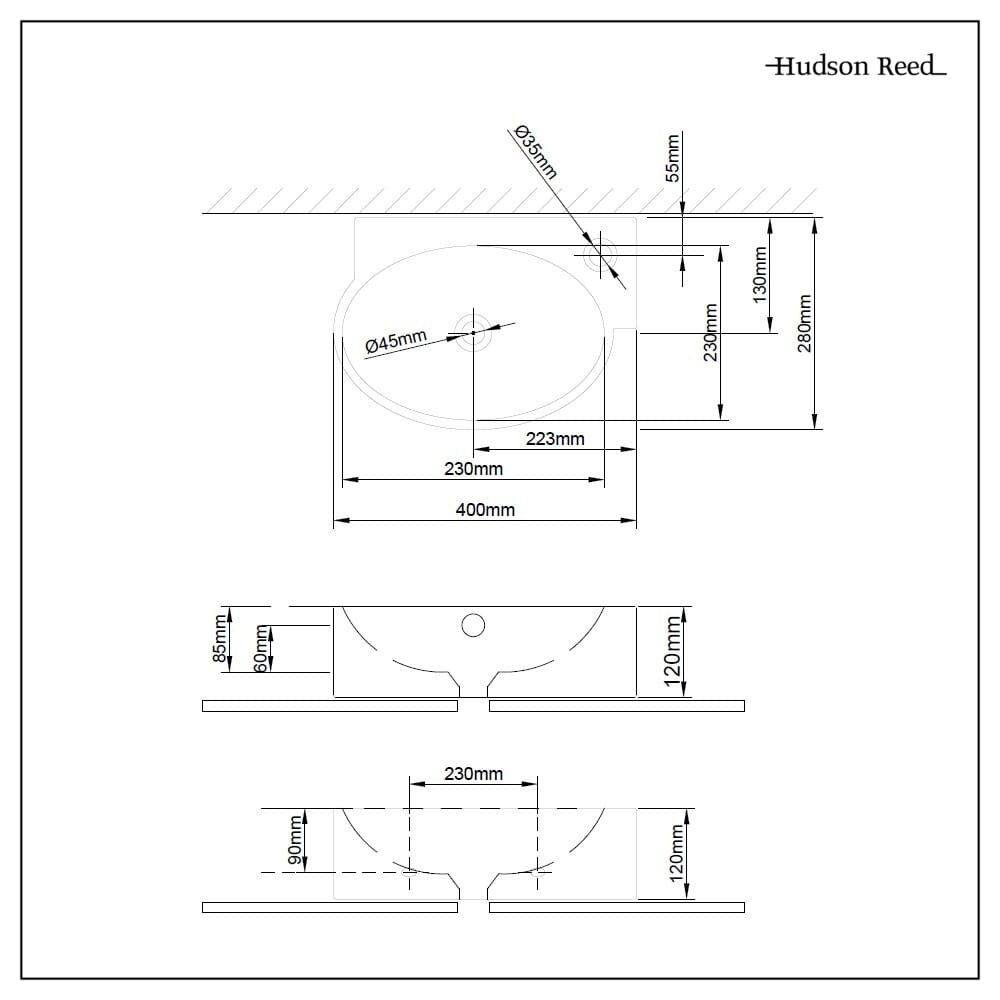 Lavabo Bagno Sospeso Ovale in Ceramica 430x280mm con Rubinetto Miscelatore - Ashbury