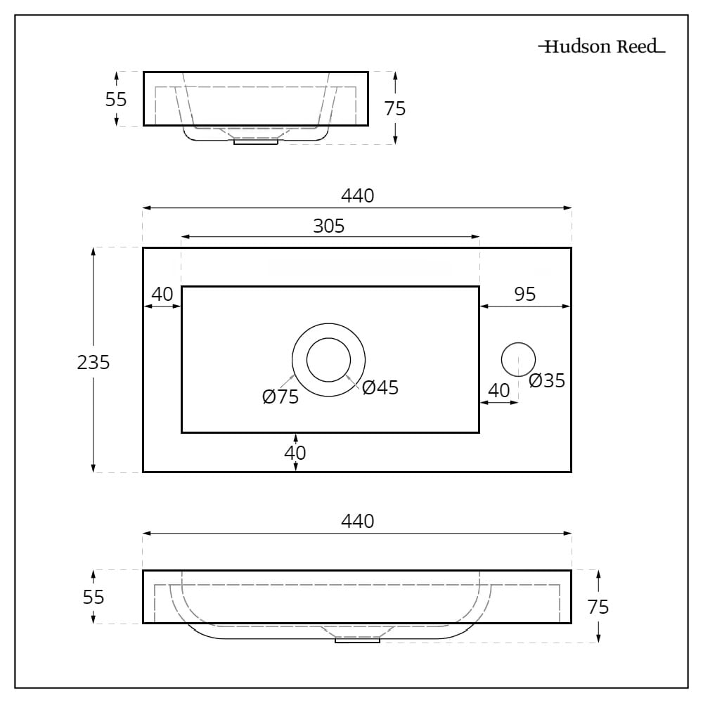 Con una struttura resistente in polimarmo, questo lavabo presenta linee pulite per un tocco contemporaneo e un design compatto sospeso. design, che lo rende perfetto per bagni di piccole dimensioni. Dispone inoltre di un singolo foro per la rubinetteria e può quindi essere abbinato a qualsiasi rubinetto monoforo Hudson Reed per completare il look.