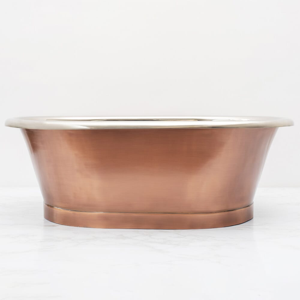 Questo lavabo è stato realizzato in rame ed è caratterizzato dalla sua elegante finitura rame antico con interno nichel.
