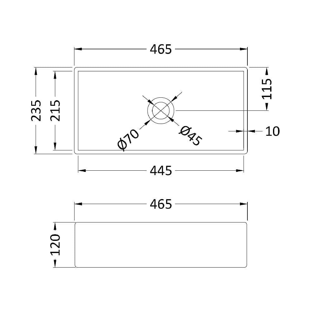 - Dimensioni: L 465 mm x P 235 mm x A 120 mm