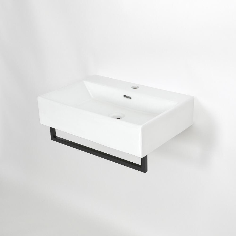 Lavabo Sospeso Bianco Rettangolare con Porta Salviette Nero 605mm x 430mm - Sandford