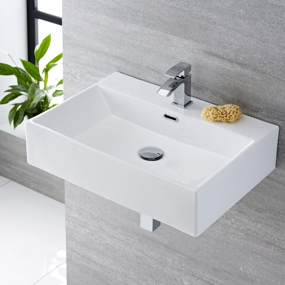 Lavabo Sospeso Rettangolare Monoforo in Ceramica Bianca 605x430mm - Sandford