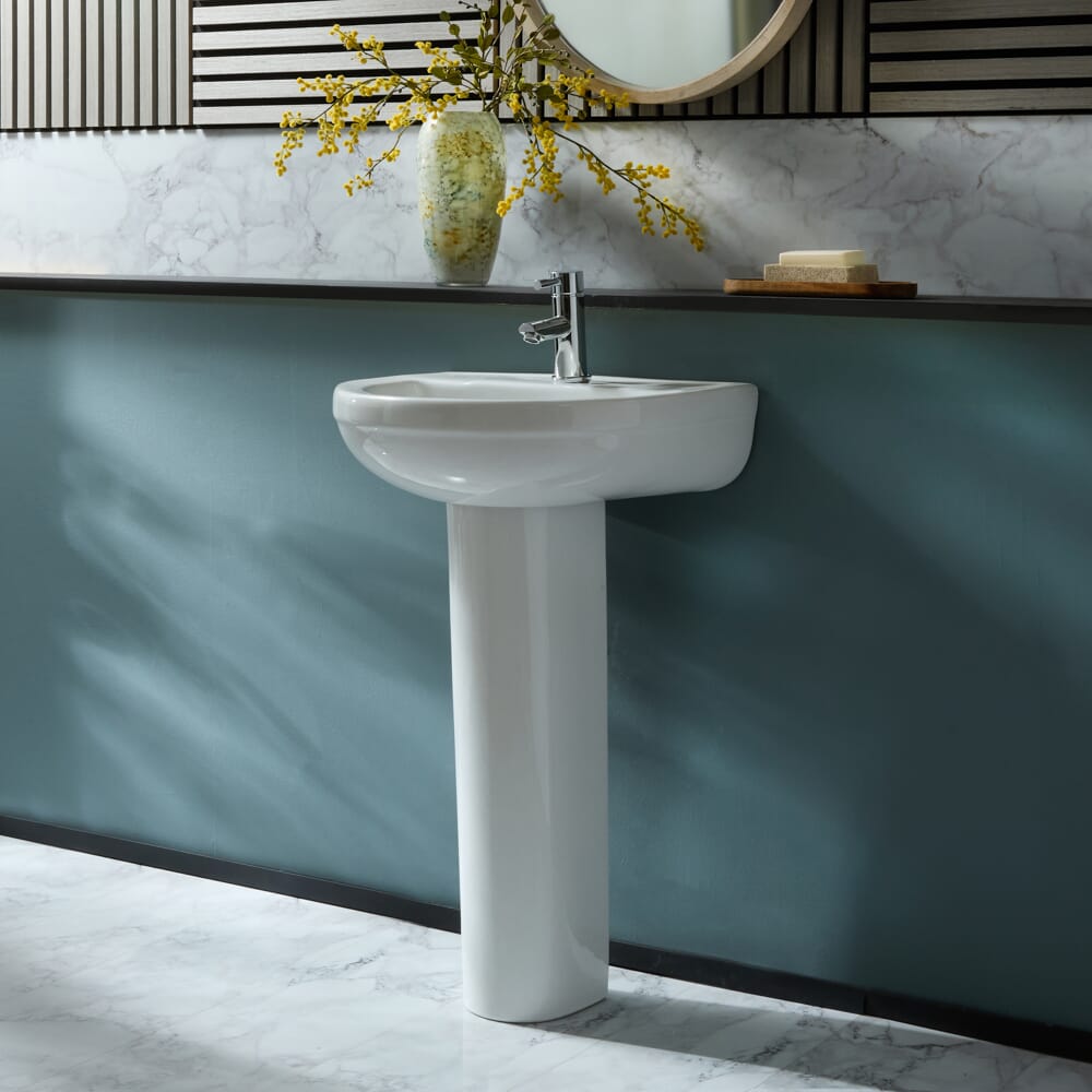 Crea un look elegante nella tua stanza da bagno con questo fantastico lavabo bagno 500mm x 416mm X 823mm completo di colonna della gamma Covelly.