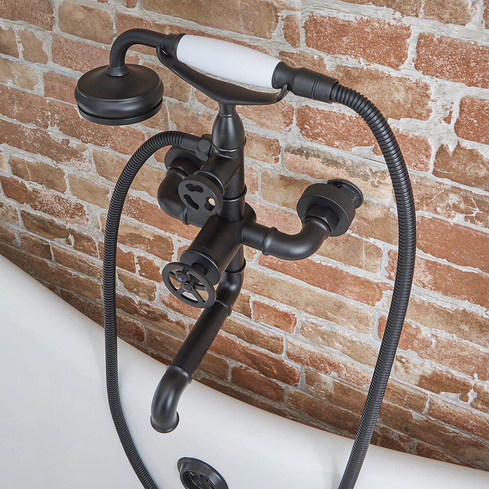 Con un design ispirato allo steampunk per un tocco alternativo, questo miscelatore per vasca e doccia presenta una finitura nera opaca resistente e un'elegante maniglia circolare che fornisce un flusso e un controllo della temperatura senza sforzo. È stato realizzato secondo i più alti standard in ottone massiccio, garantendo una lunga durata e incorpora la tecnologia dei dischi in ceramica per evitare perdite e gocciolamenti.