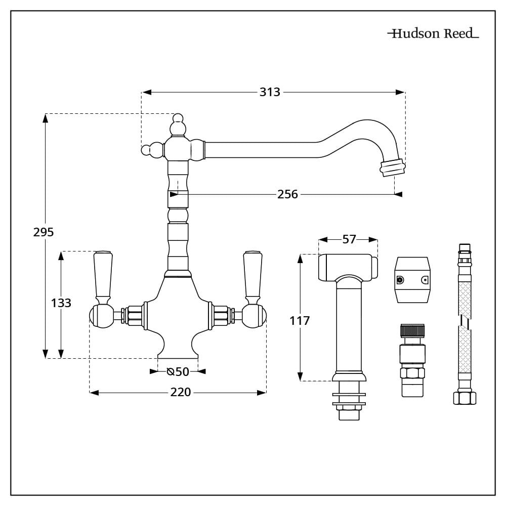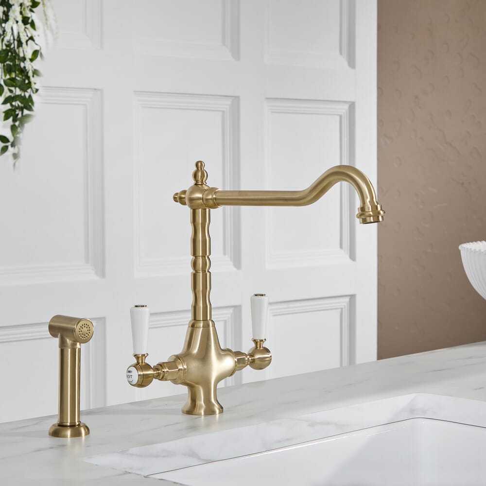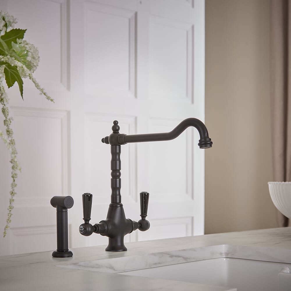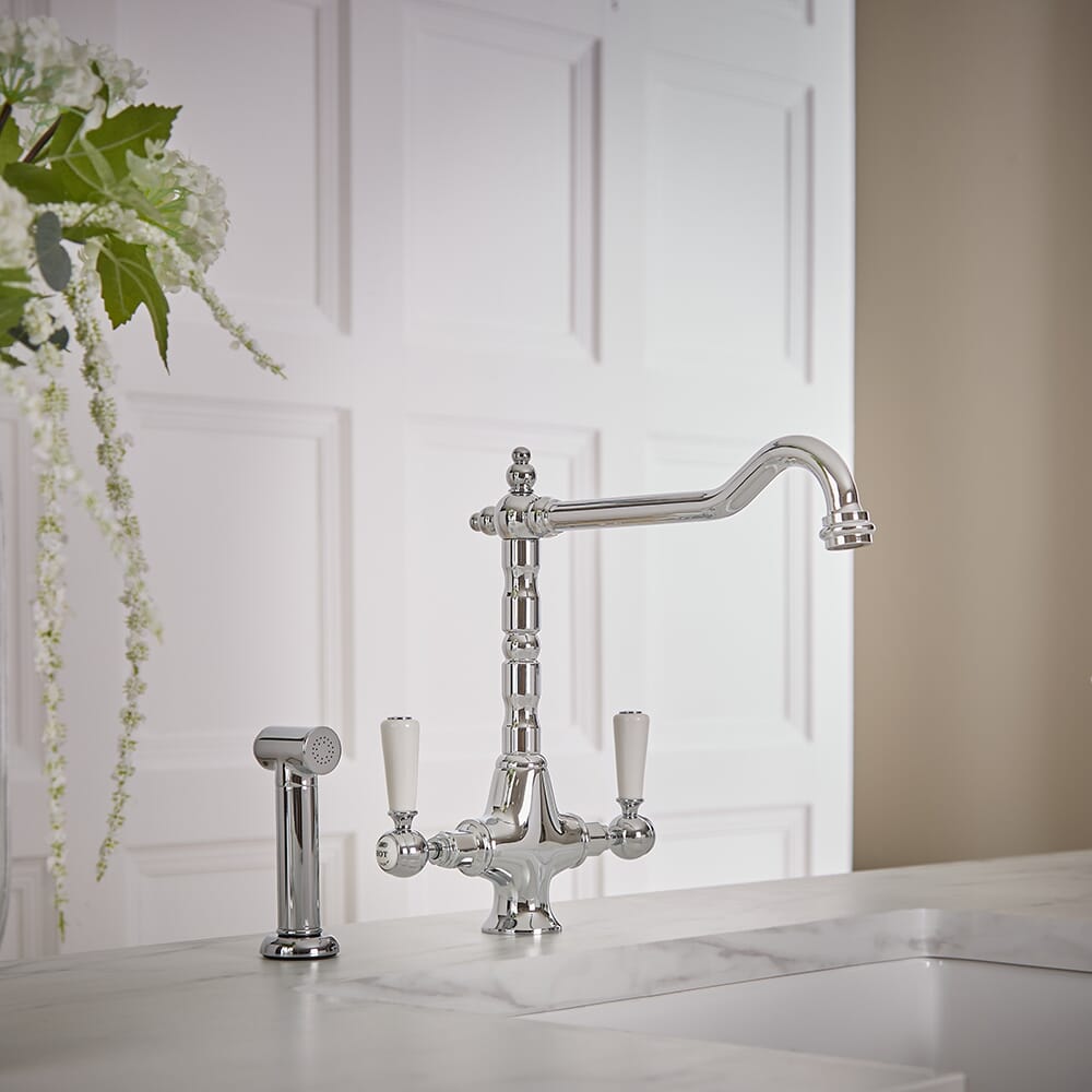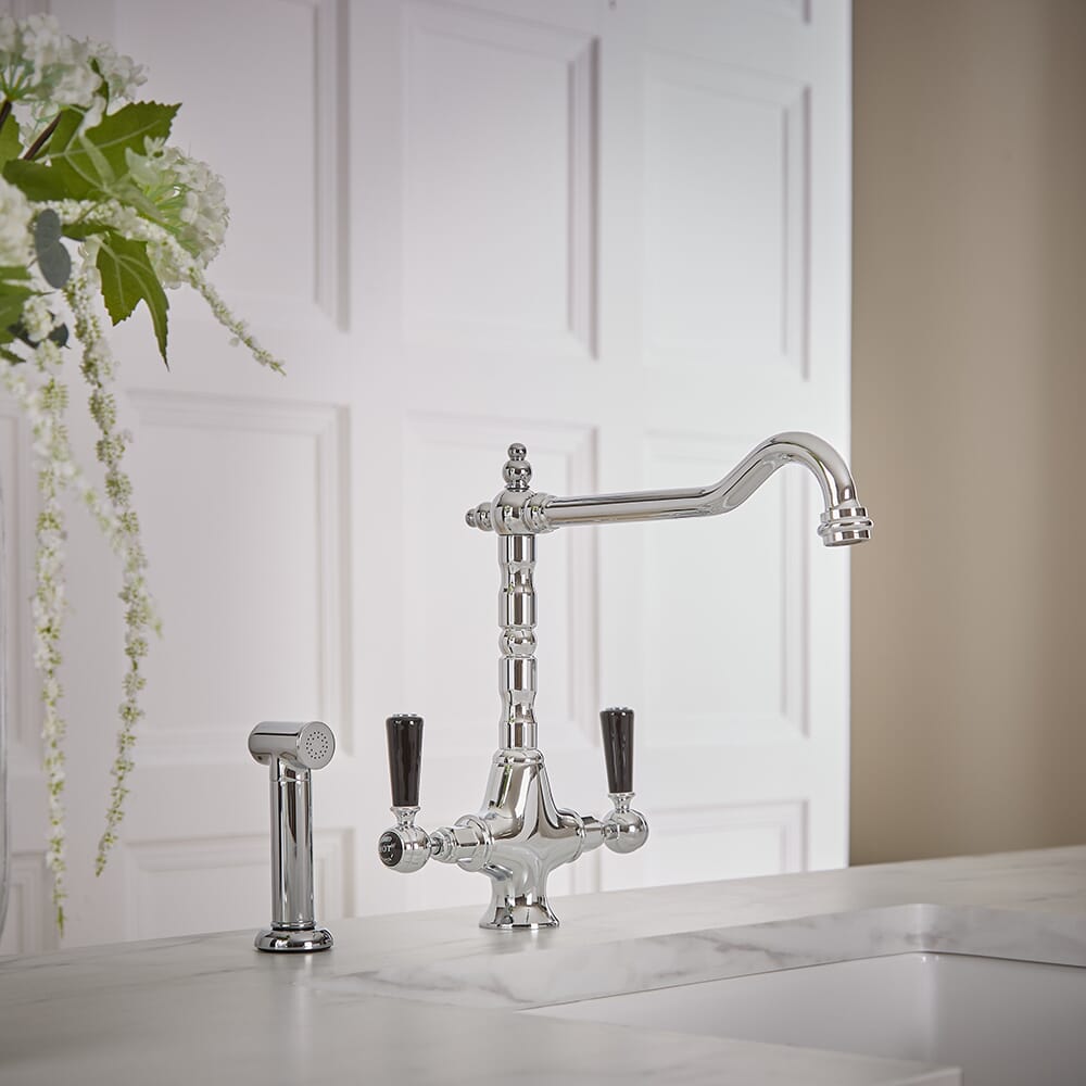 Il miscelatore da cucina Elizabeth, completo di doccetta estraibile, fonde perfettamente il design tradizionale con la funzionalità moderna.