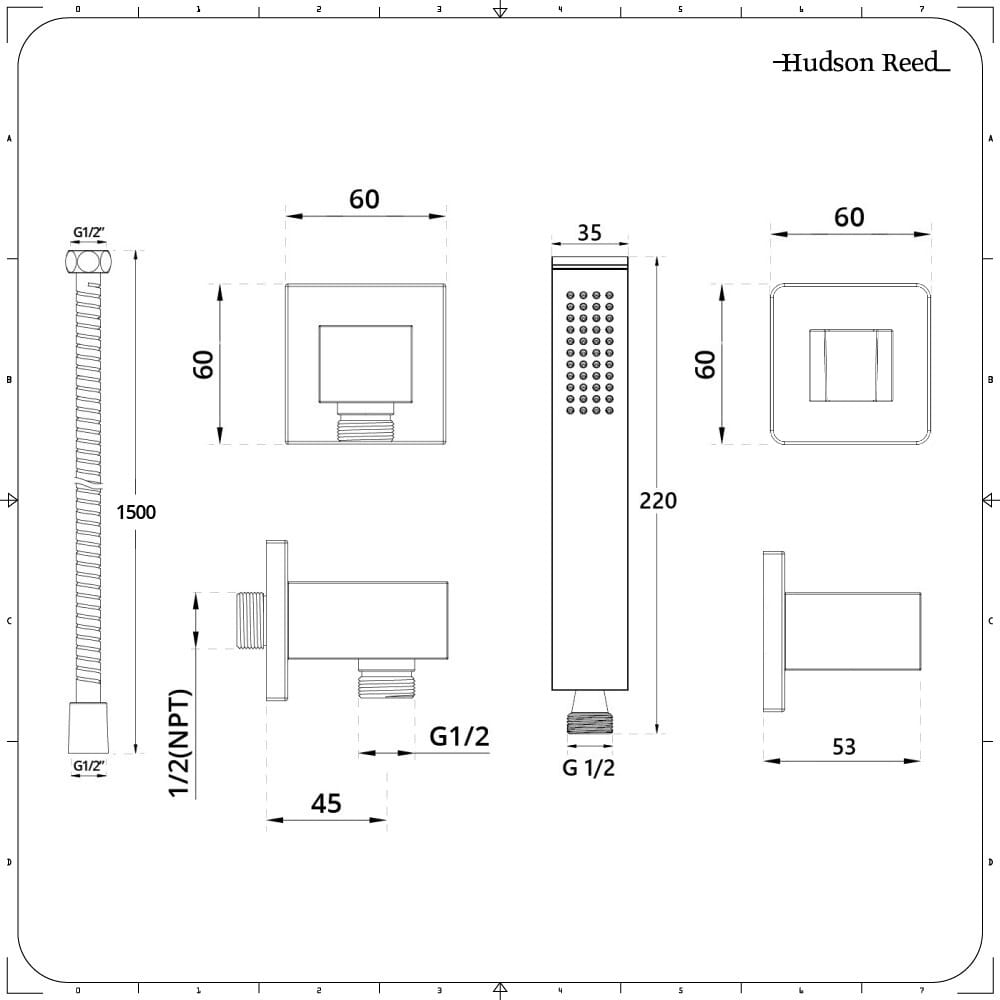 Miscelatore Doccia con Soffione Incassato, Doccetta, Supporte e Gomito – Nichel Spazzolato – 2 Vie – Harting