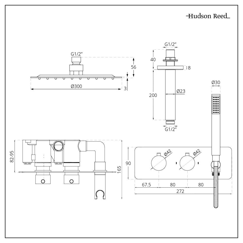 Realizzato in ottone cromato, questo miscelatore doccia termostatico con deviatore integrato si caratterizza per l’elegante design circolare con finitura cromata di alta qualità e un moderno design. Viene fornito con un soffione doccia 300mm, braccio doccia a soffitto, un flessibile doccia 175cm e una doccetta con ugelli di silicona per prevenire l'accumulo di calcare.