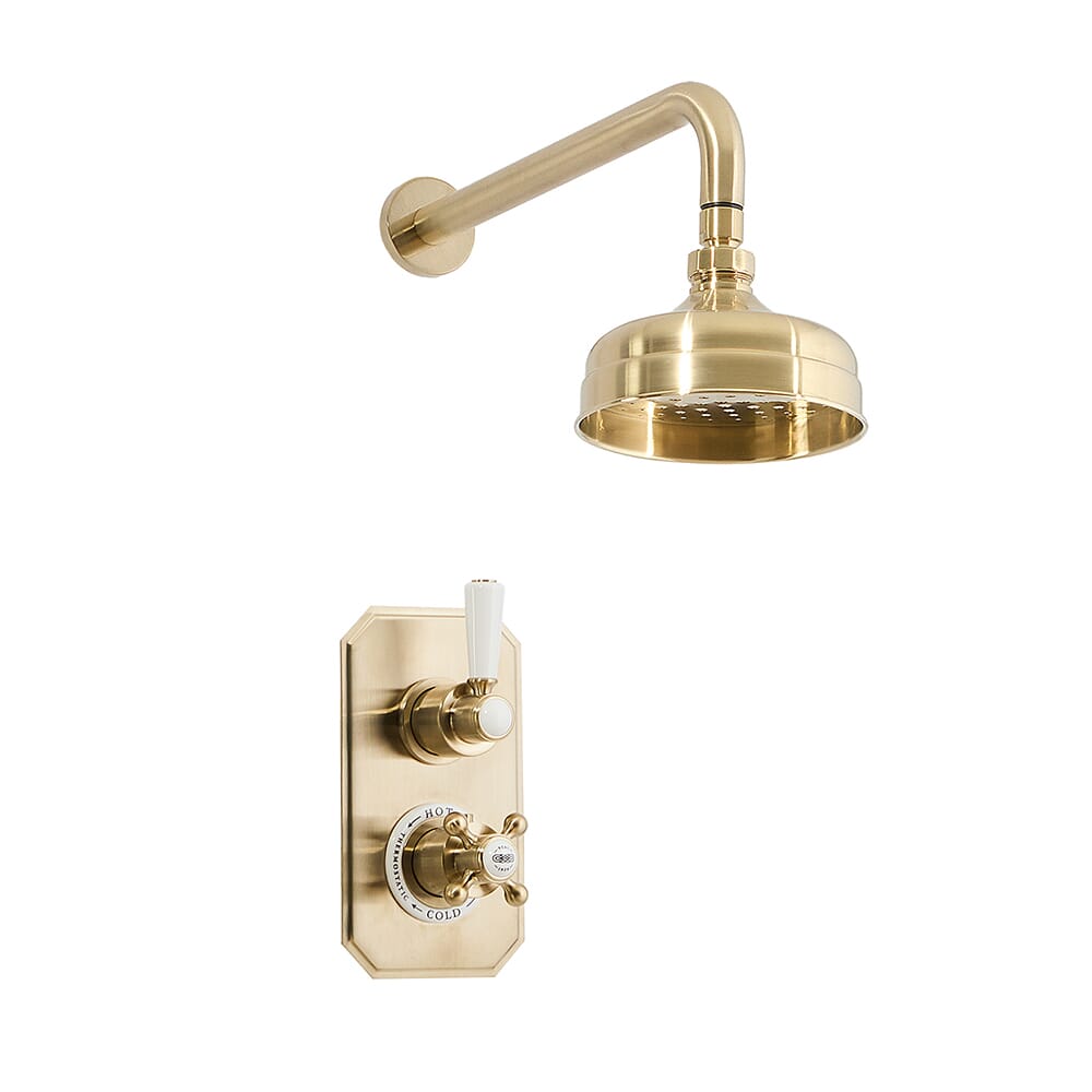 Miscelatore Doccia Termostatico Tradizionale in Oro Satinato con Soffione a Parete (1 Via) - Elizabeth