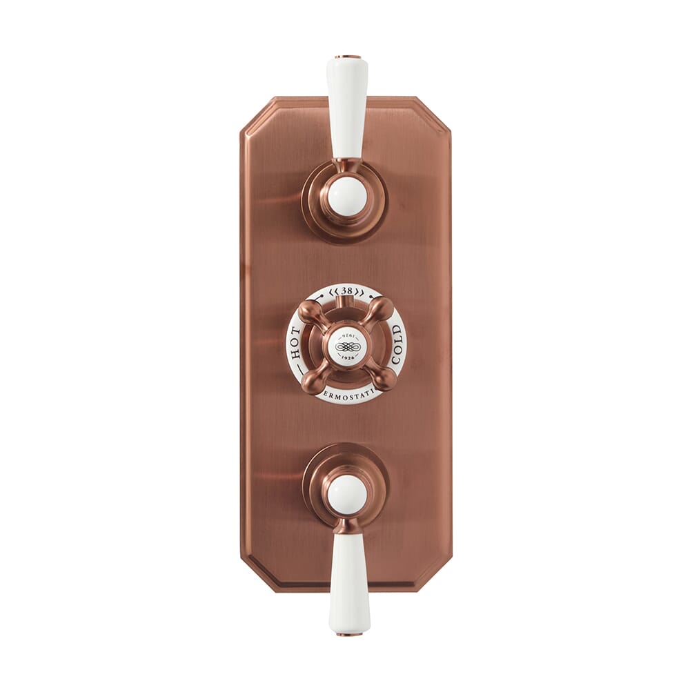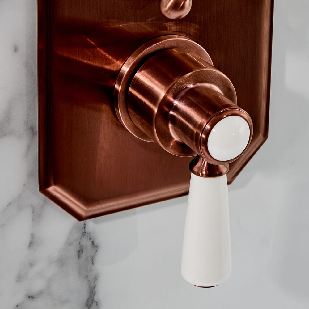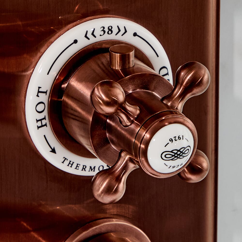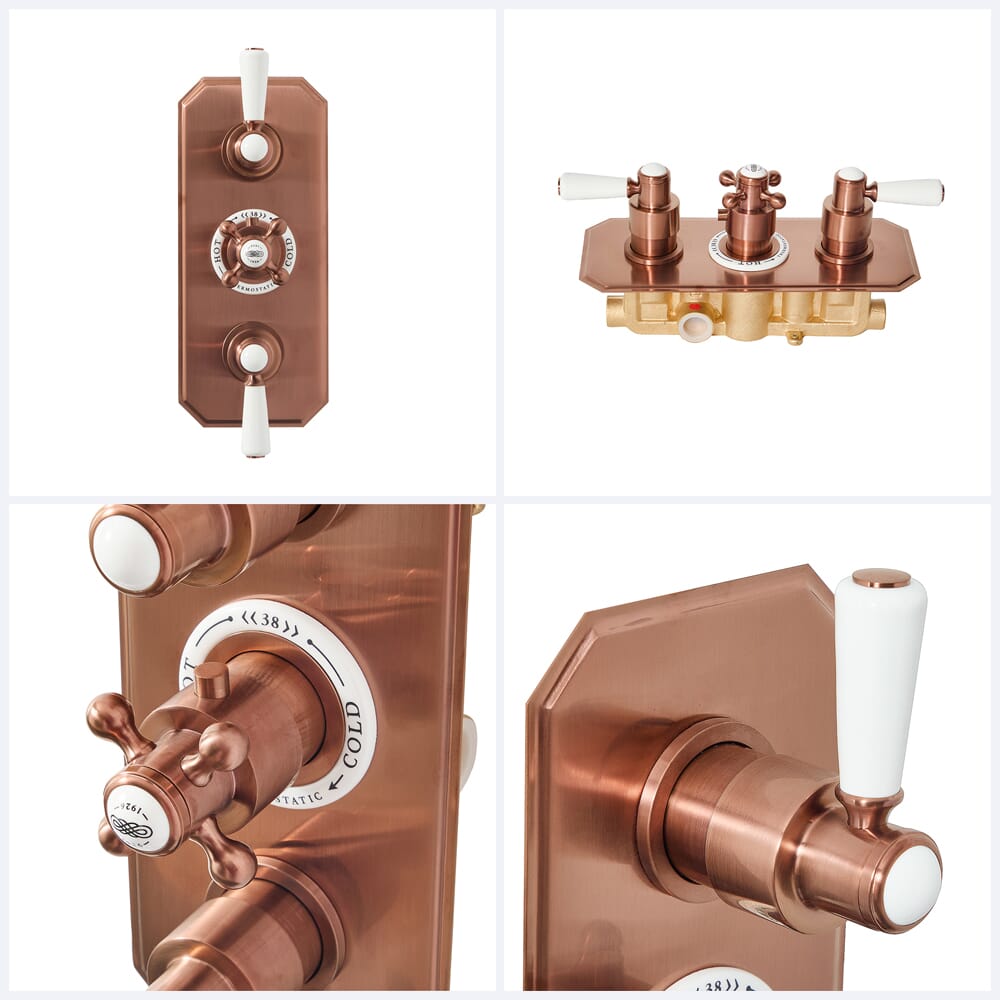 Crea uno straordinario look vintage con il miscelatore termostatico triplo con design nascosto in rame satinato Elizabeth.
