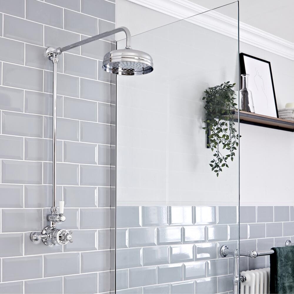 Realizzato in ottone massiccio, il miscelatore termostatico è caratterizzato da una finitura cromata resistente e accenti in ceramica bianca creando un look che resisterà alla prova del tempo.