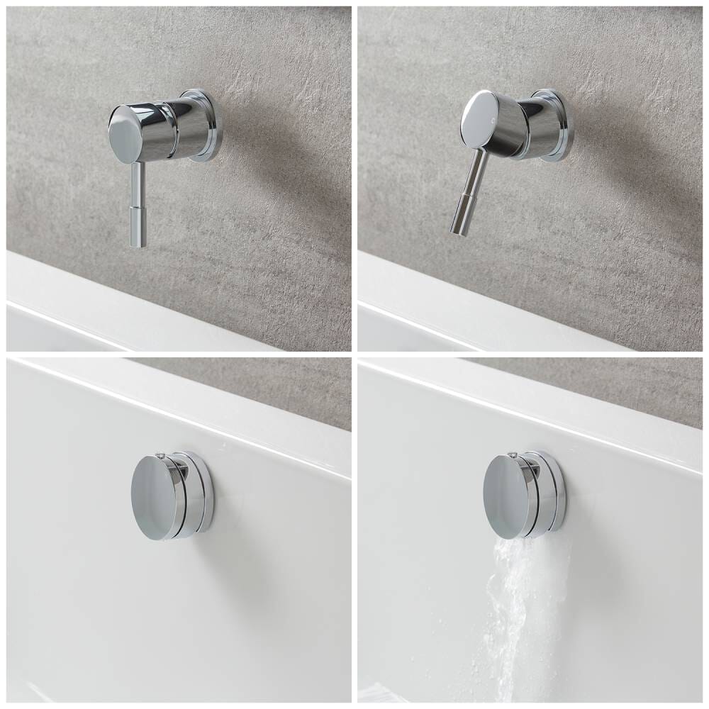 La combinazione di riempimento e scarico vasca multifunzione è stata progettata per adattarsi al troppo pieno della vasca, eliminando la necessità di rubinetti e creando un aspetto minimale e un'atmosfera ultra moderna.