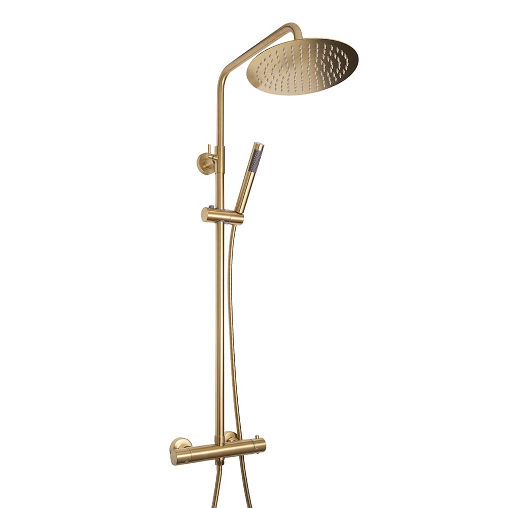 Miscelatore Termostatico Moderno per Doccia con Soffione Tondo e Doccetta - Oro Satinato - Ayanna